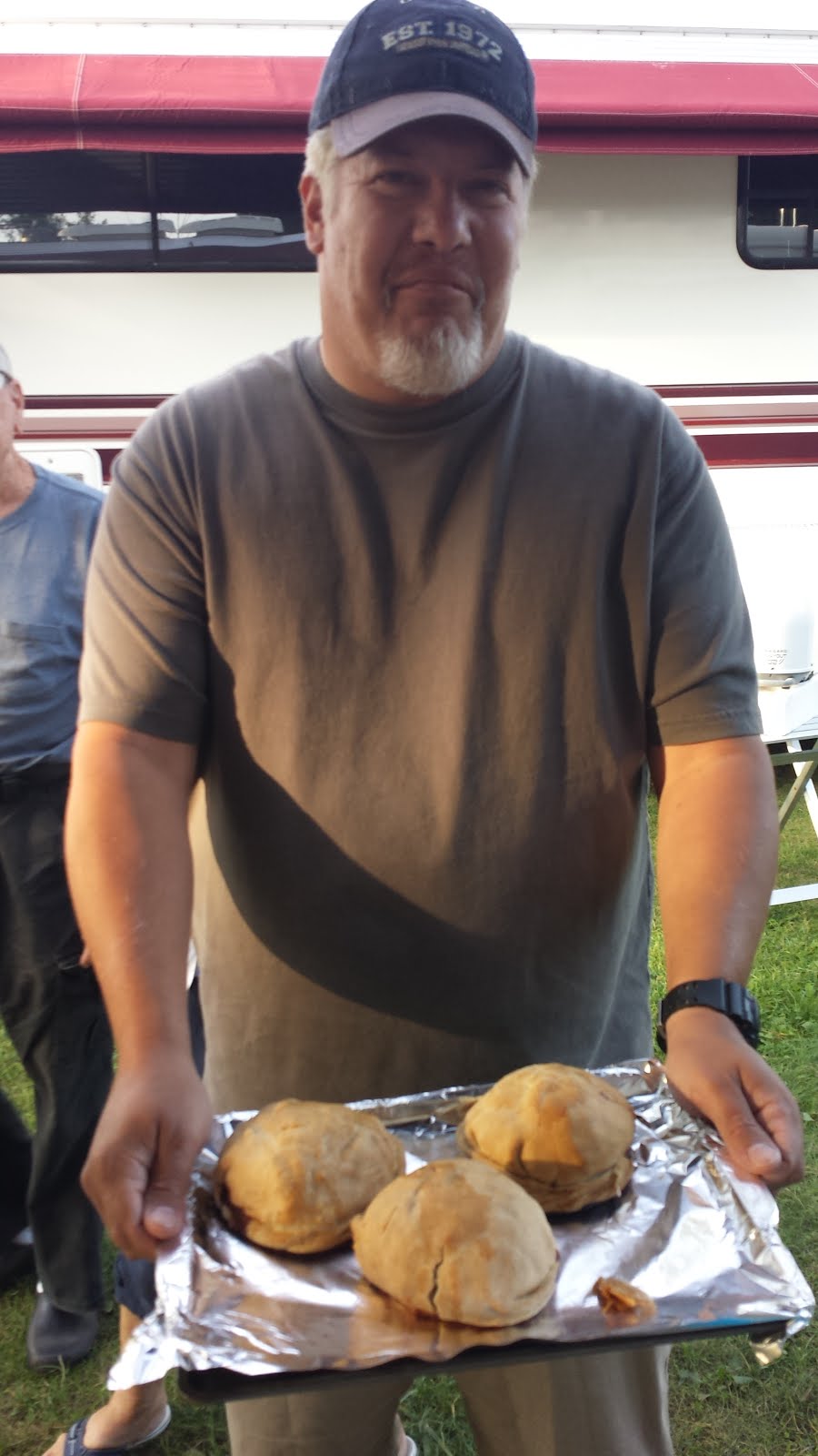 Susan has her mother’s hand written recipe handed down from one lunch pail to the next over generations. We follow this, the Gospel of Pie, almost exactly. We leave out the suet (the birds get it) and to make them a bit more heart healthy, we leave out the lard. We added some of our own decorative embellishments and baked up a batch to share in the convection/microwave oven in the coach. It really smelled good.
