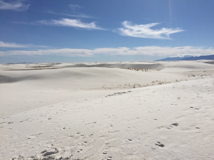 About an hour north east of Las Cruces in the Tularosa Basin there is an amazing 275 square mile area of giant white gypsum sand dunes. This is the largest gypsum dunefield in the world and most of it is protected within the White Sands National Monument.