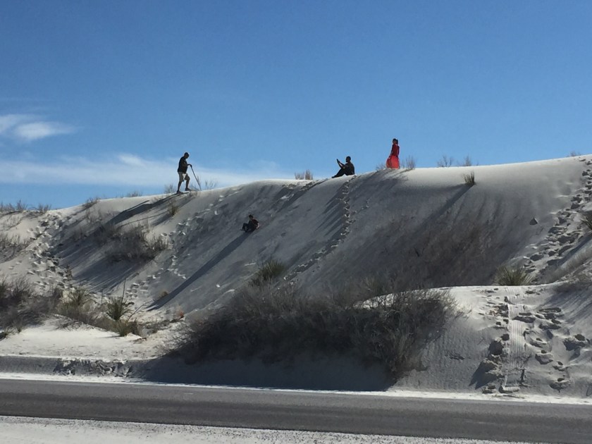 A popular activity is hiking out in the dunes to a big hill and sliding down on plastic flying saucers, just like what we did when we were kids in Minnesota on snow. You can buy a “dune disk” for $18. When you are done they will buy them back for $5. They also had “refurbished” used disks for $12. What a racket! No rentals.
