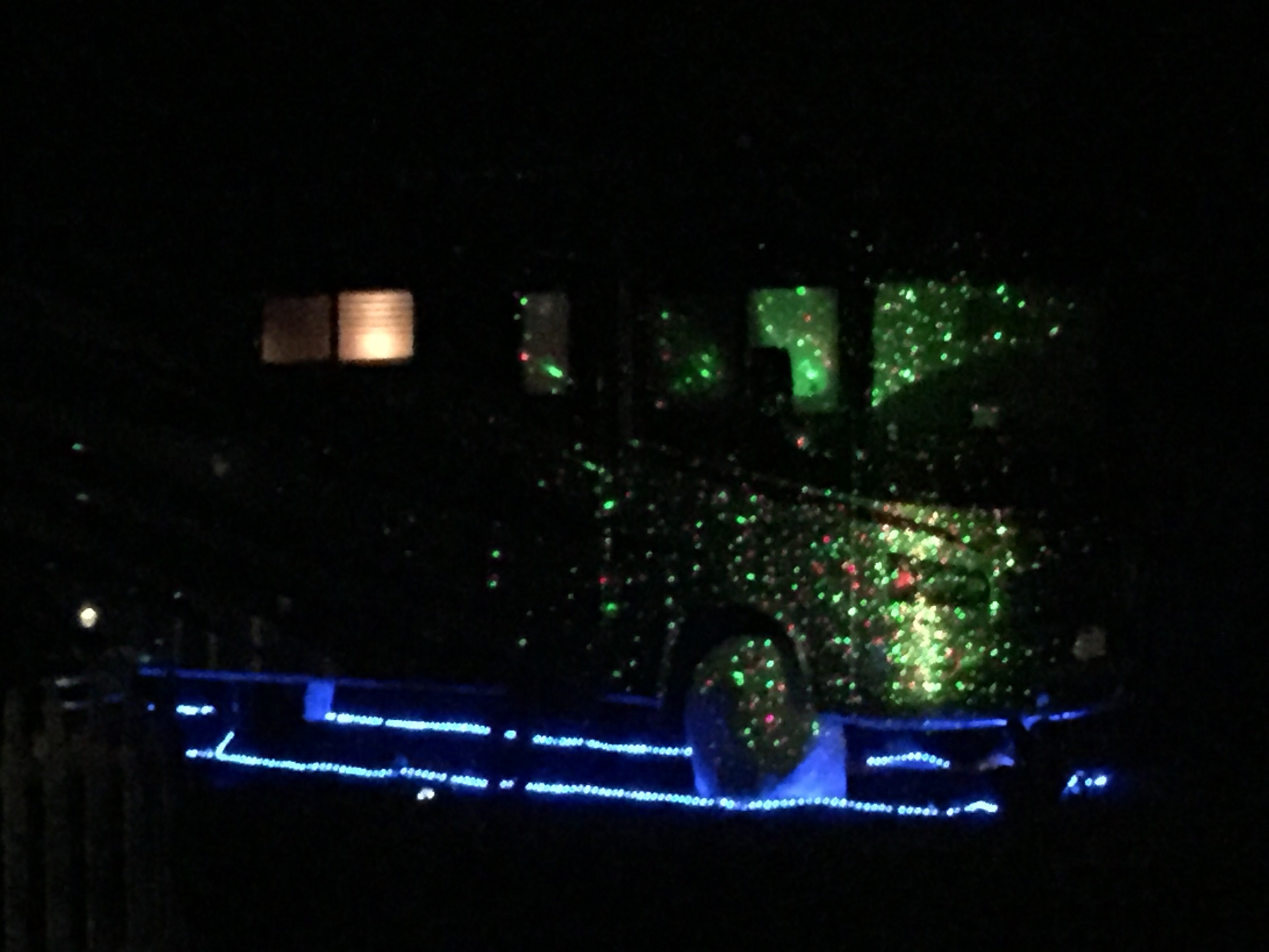 Here is an example. Actually not as bad as some but the guy had three projectors shining the little light speckles on his coach. It is like everyone is trying to decorate for Christmas. They will all tell you that this keeps away rodents, snakes, spiders and things that crawl up into into your RV and eat wires. I am convinced that this old wives tale was propagated by the “Ugly Rope Light Manufacturers Assoociation” as a way to sell this ugliness to the naive RV public. There is no evidence that this works but lots of less than logical testimonials that it does.