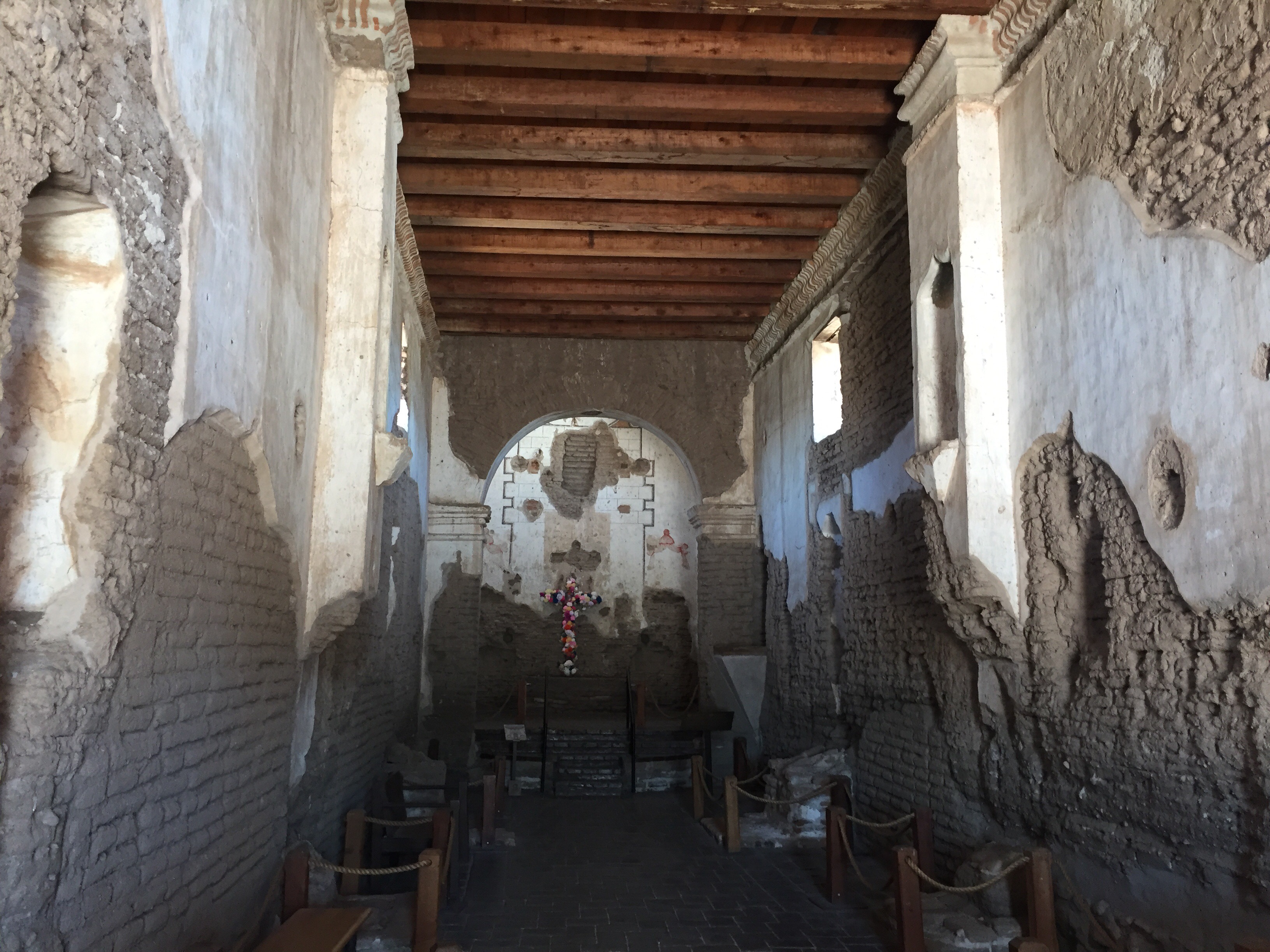The interior of the mission church was pretty substantial and much cooler inside than out. There were drawings that showed what it might have looked like. The roof beams and roof were part of the stabilization and preservation effort. Without a roof the building wouldn’t have survived very long.