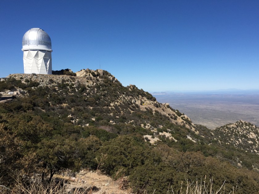 Kitt Peak National Observatory is about 50 miles west of Diamond J’s. It is on the top 300 feet one of the most important mountains in the cultural heritage of the Tohono O’odham Nation. This area was identified as a candidate for a National Observatory in the 1950’s. There were careful negotiations with the Tohono O’odham elders for permission to build on the top of the 6,800 foot mountain. They finally agreed and the site is respectful of the cultural heritage.