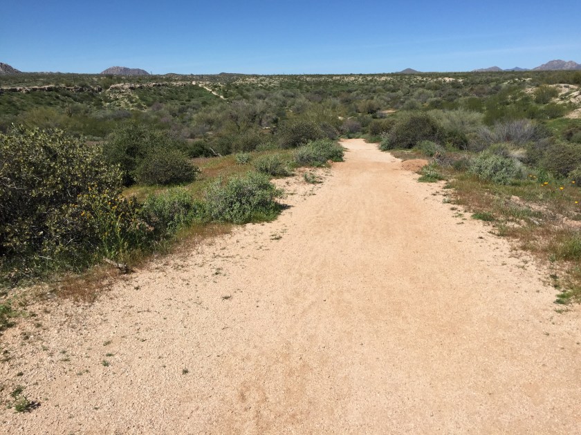 The hiking/biking trails are easy to follow on a park map. There is a huge 30 miles loop trail and shorter loop trails inside of that and then connecting trails in every direction. In many cases they lead to the border of the park and connect to trails heading further away. Most trails are wide and smooth. Not many rocks. There are some places where the trails cross a wash where there is loose, soft sand.