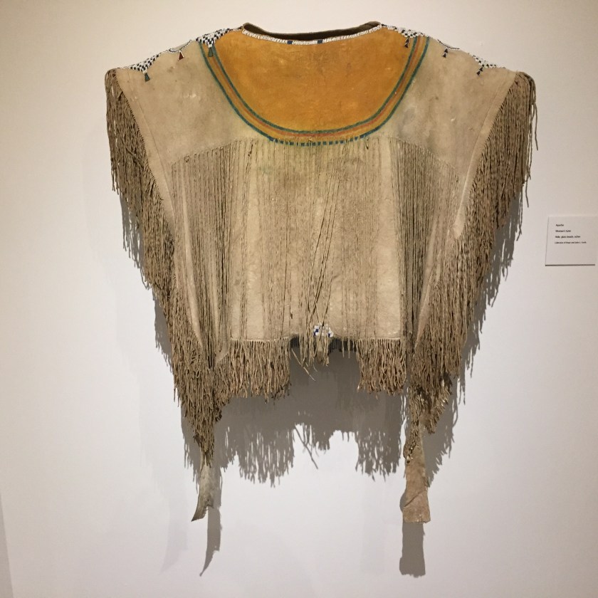 And in this hand made Apache Woman’s tunic. Made of animal hide, probably deer or elk, glass beads and ochre color it had to represent a very long effort to craft such fine detail. Perhaps it was for ceremonial wear, perhaps every day – it did not say. But in the skill and dedication to detail and design and in the very fine fringe someone’s work, all by hand using crafts and skills perhaps lost today, there is beauty.