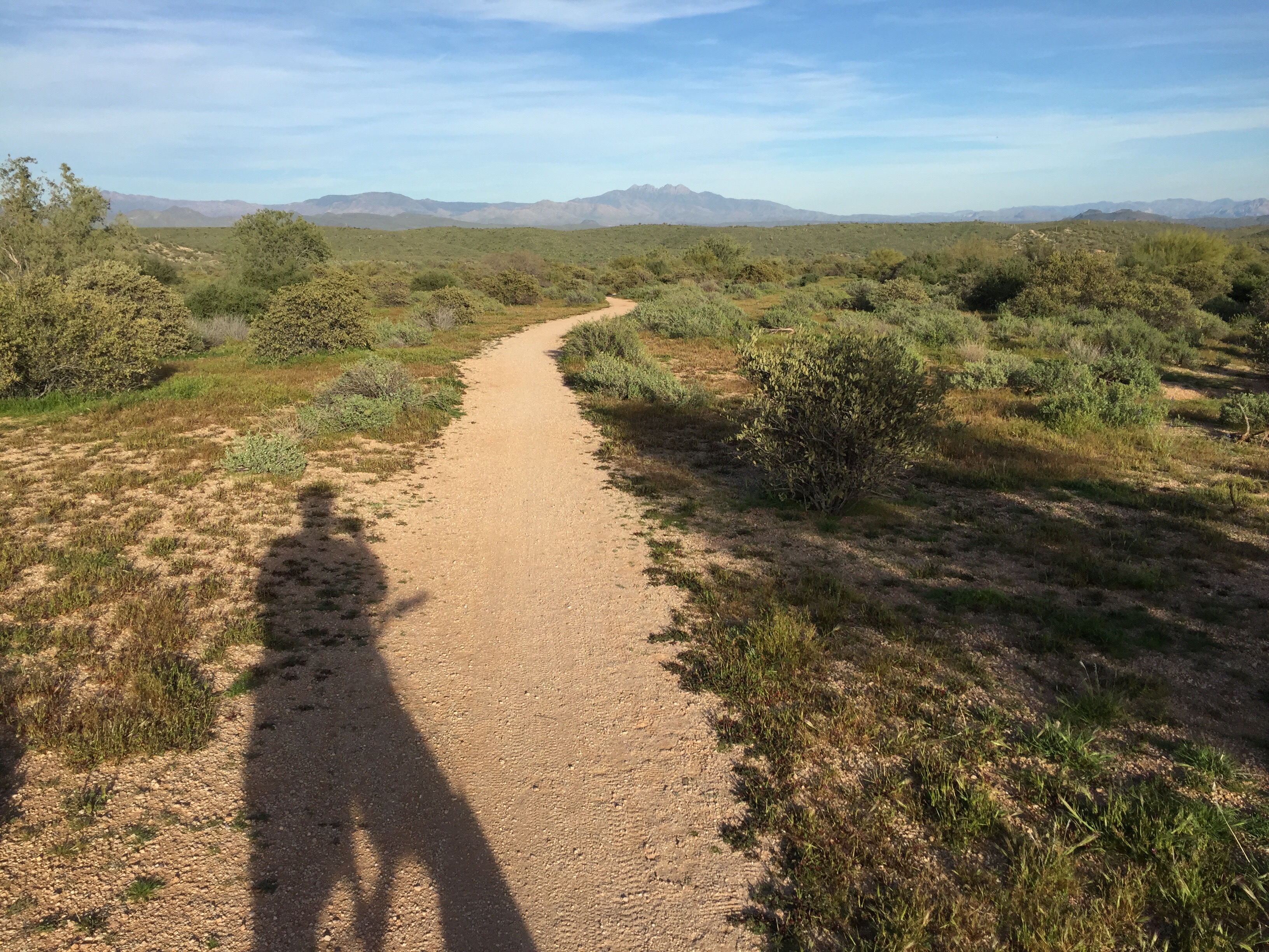 The hiking/biking trails are easy to follow on a park map. There is a huge 30 miles loop trail and shorter loop trails inside of that and then connecting trails in every direction. In many cases they lead to the border of the park and connect to trails heading further away. Most trails are wide and smooth. Not many rocks. There are some places where the trails cross a wash where there is loose, soft sand.