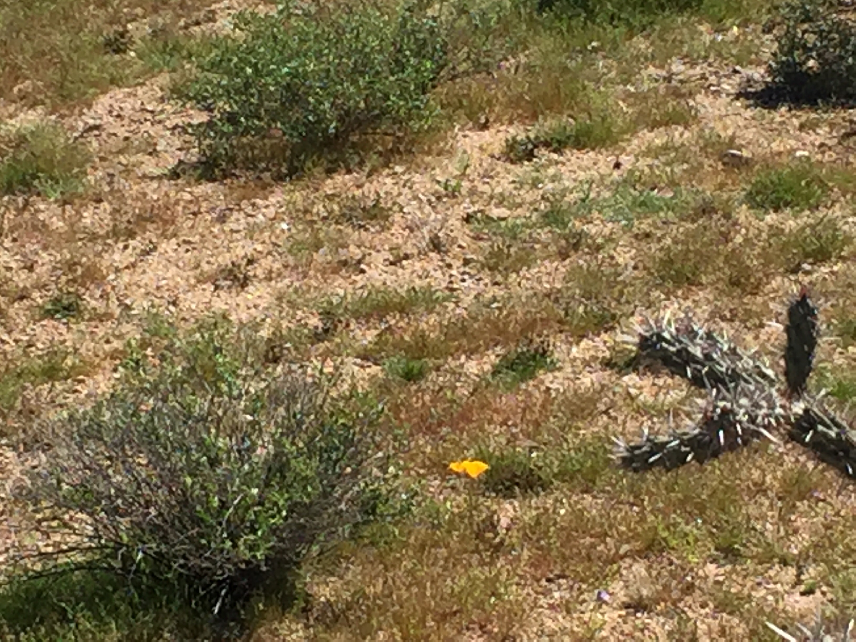 A lone poppy, but there were more flowers, some very small, some that only grew in the shadow of another plant near a place that water would flow when it rained. And there were a lot of birds here too. Cardinals! I guess that is the name of their football team. But they are snowbirds as well, only here in migration but long enough to make an impression.