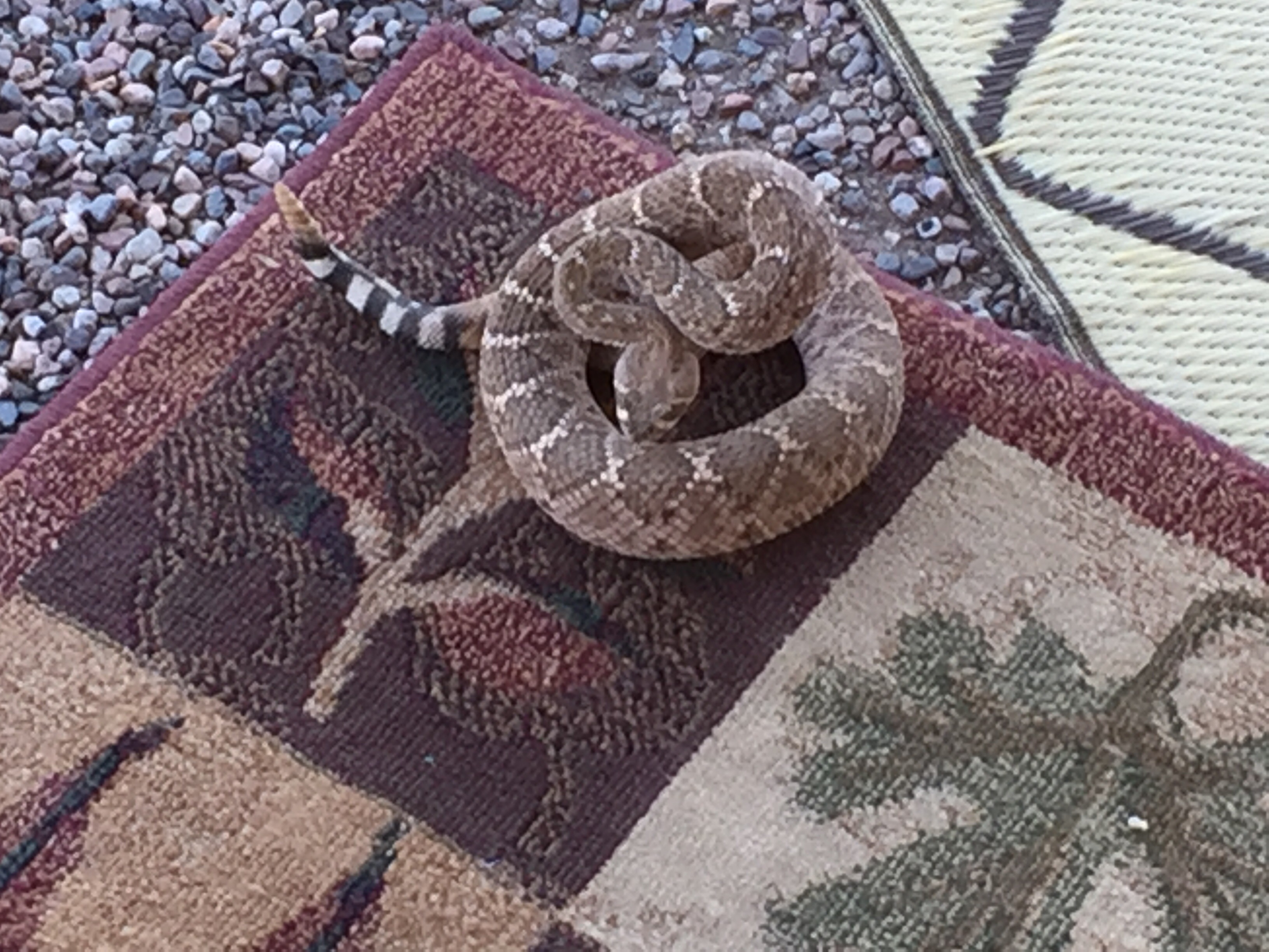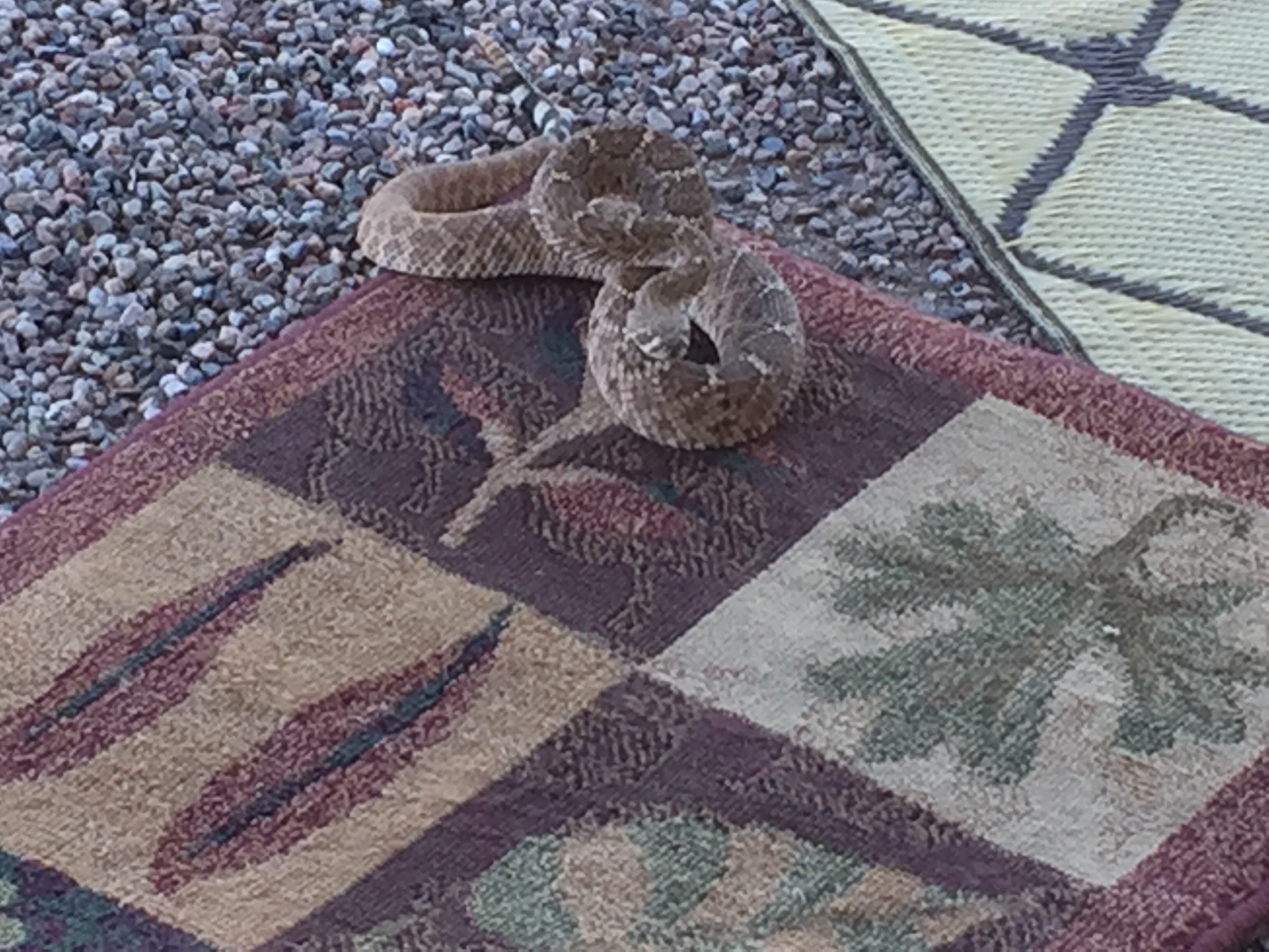 We were surprised and startled at first. We were glad the campground hosts were prepared and trained. By the time we calmed down it was interesting to look at the rattlesnake and see its colors and textures. What a sight!