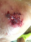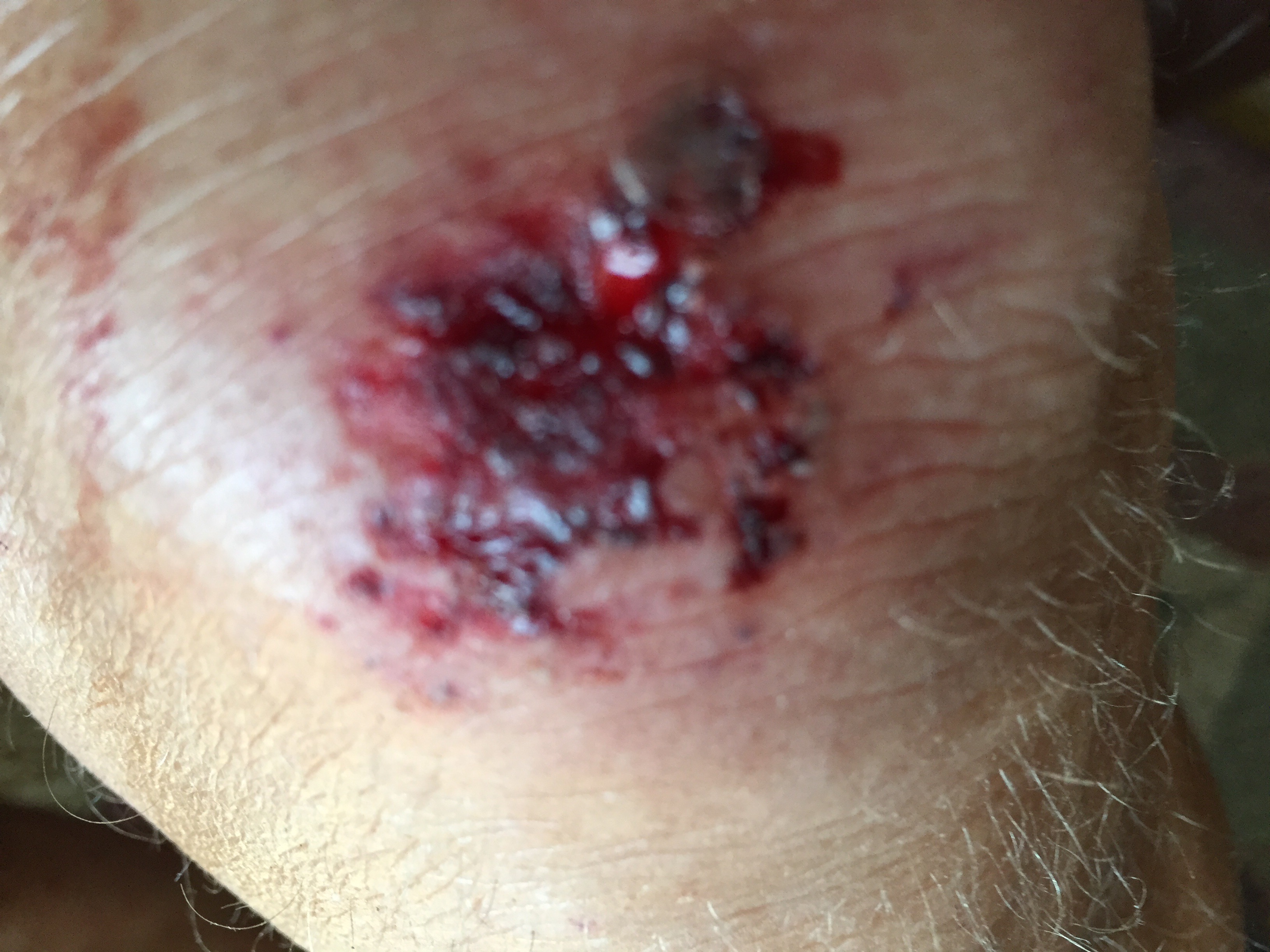 We were coming to the end of our time at Mc Dowell Mountain. Two weeks. Not enough. The morning before we left I went off on one last ride, longer than most I had done but a combination of trails I had been on before. Coming down a long fairly steep downhill chunk (faster that I should have been going) I had to make an S turn around two big thorny bushes. The first one was close and some hard braking in the second turn had my rear wheel slide out to the right in the loose gravel. I sort of did a three point landing on my left hip, elbow and knee. My elbow and knee got scraped up (three weeks later, they are doing well) and my hip got banged up. No scrapes or bruises there but it is still sore. Nothing new for me, I seem to get chewed up just standing there sometimes.