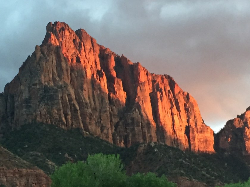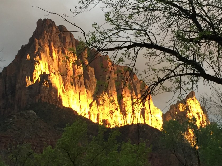 And then a tear in the clouds, the late day sun broke through and the Watchman seemed to burst into fire.