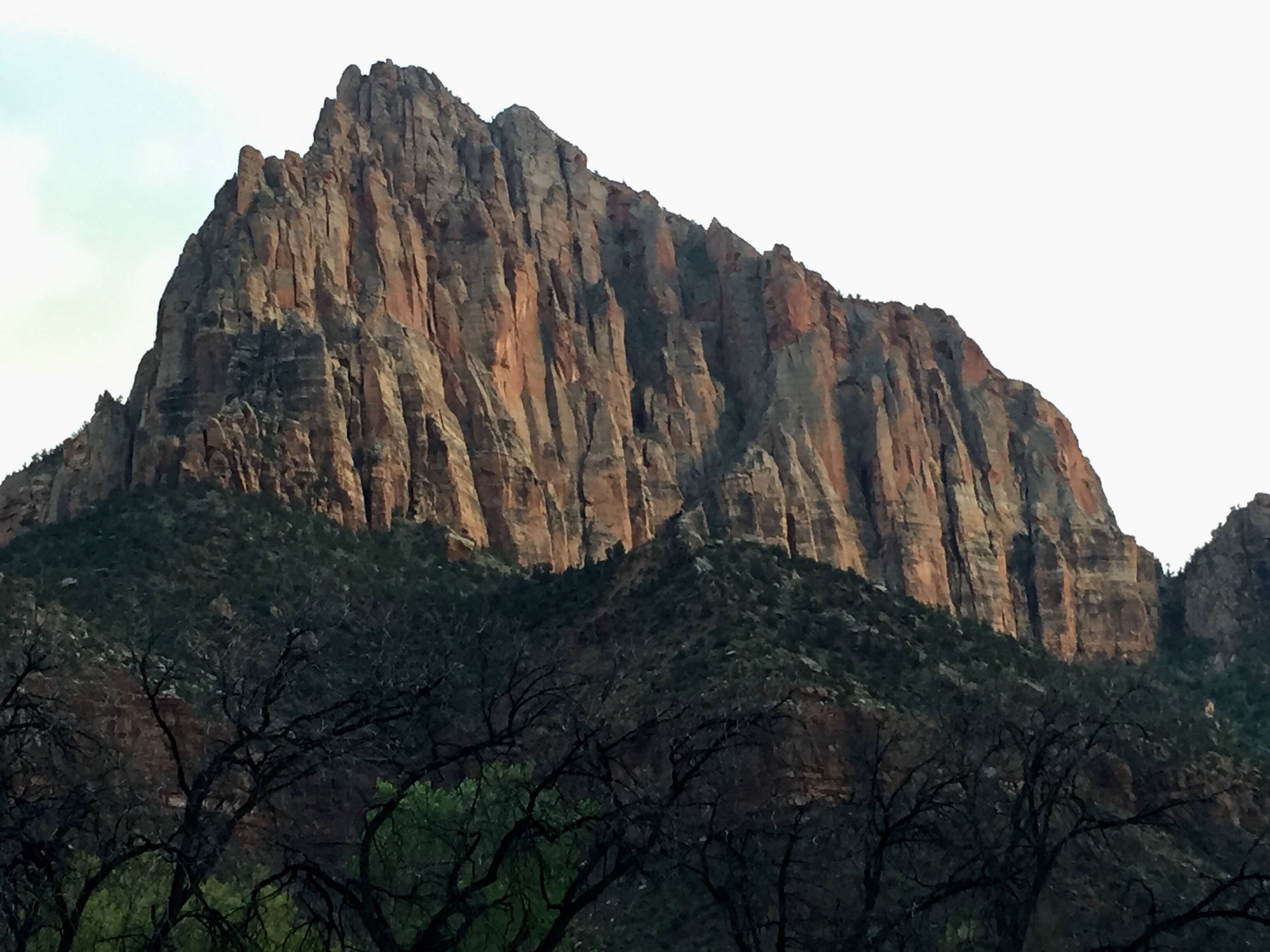 At the entrance to Zion National Park the Watchman stands as a sentinal. It is very much in view in all of Springdale and looking back from the first third of the canyon.