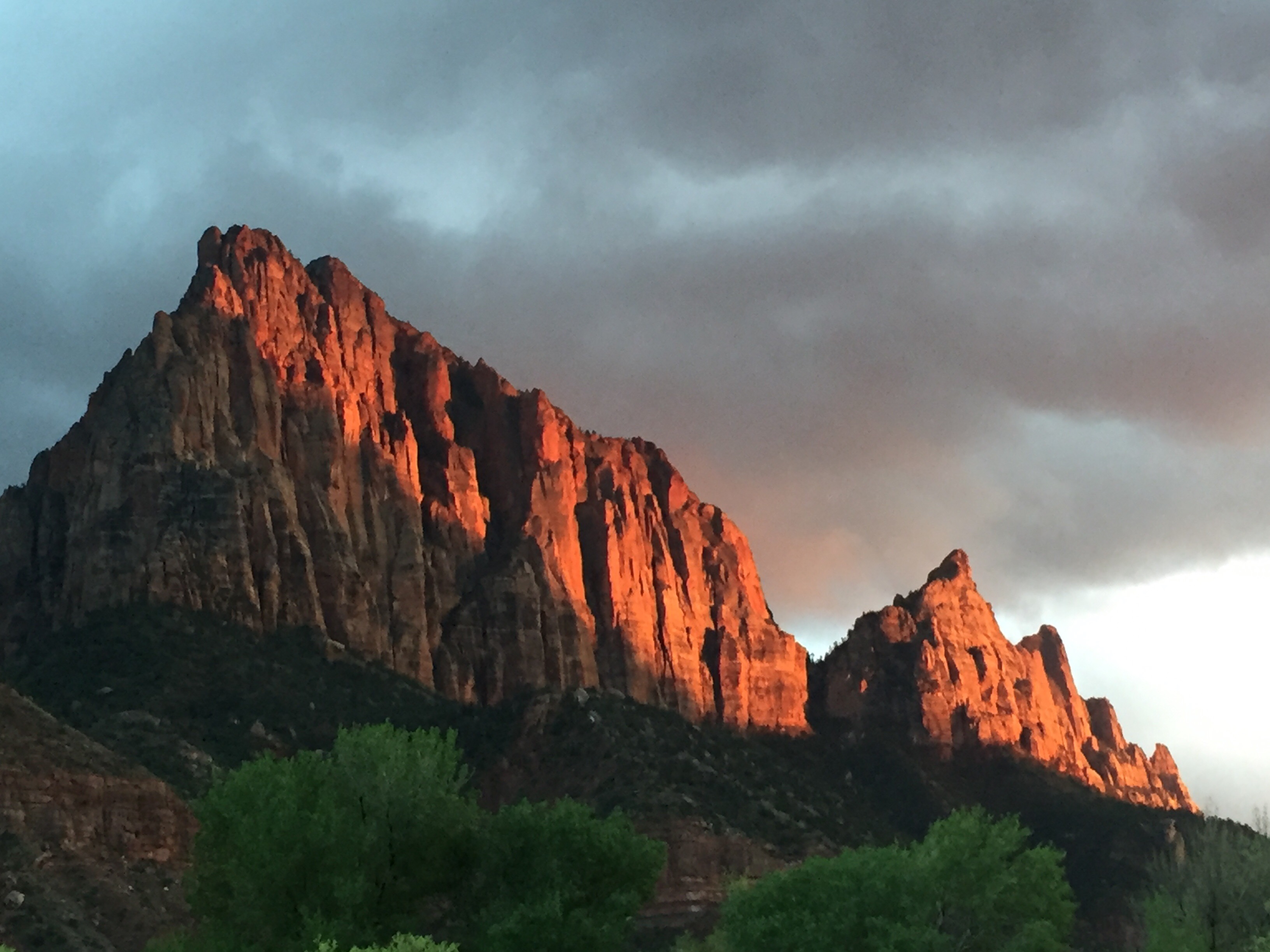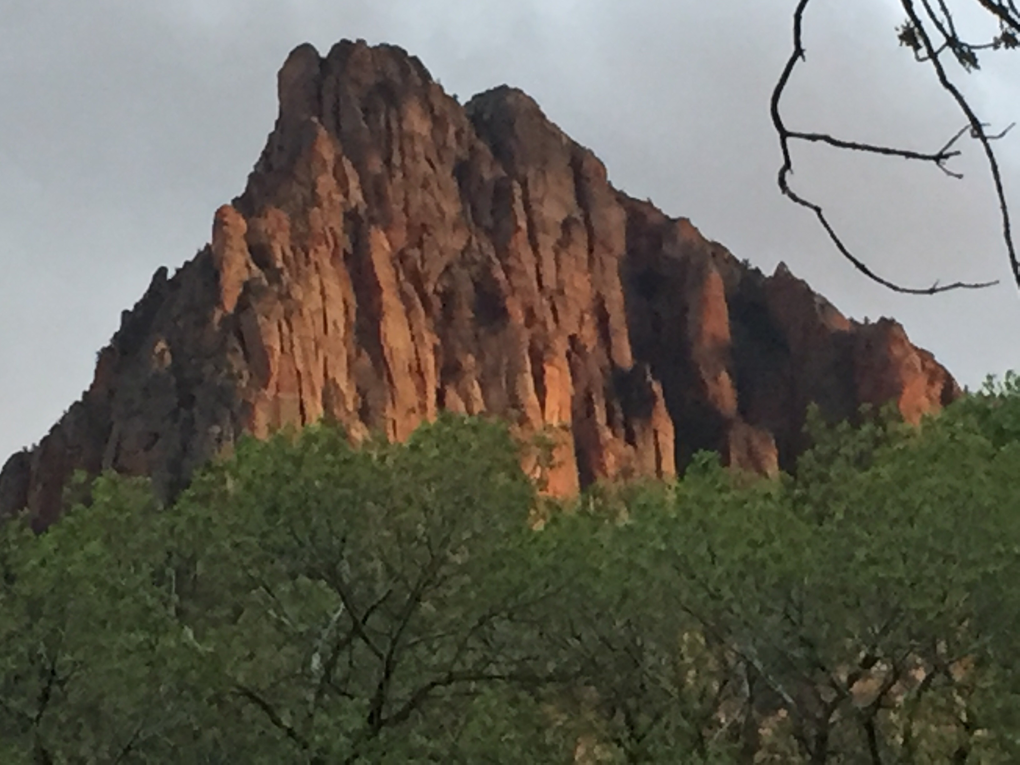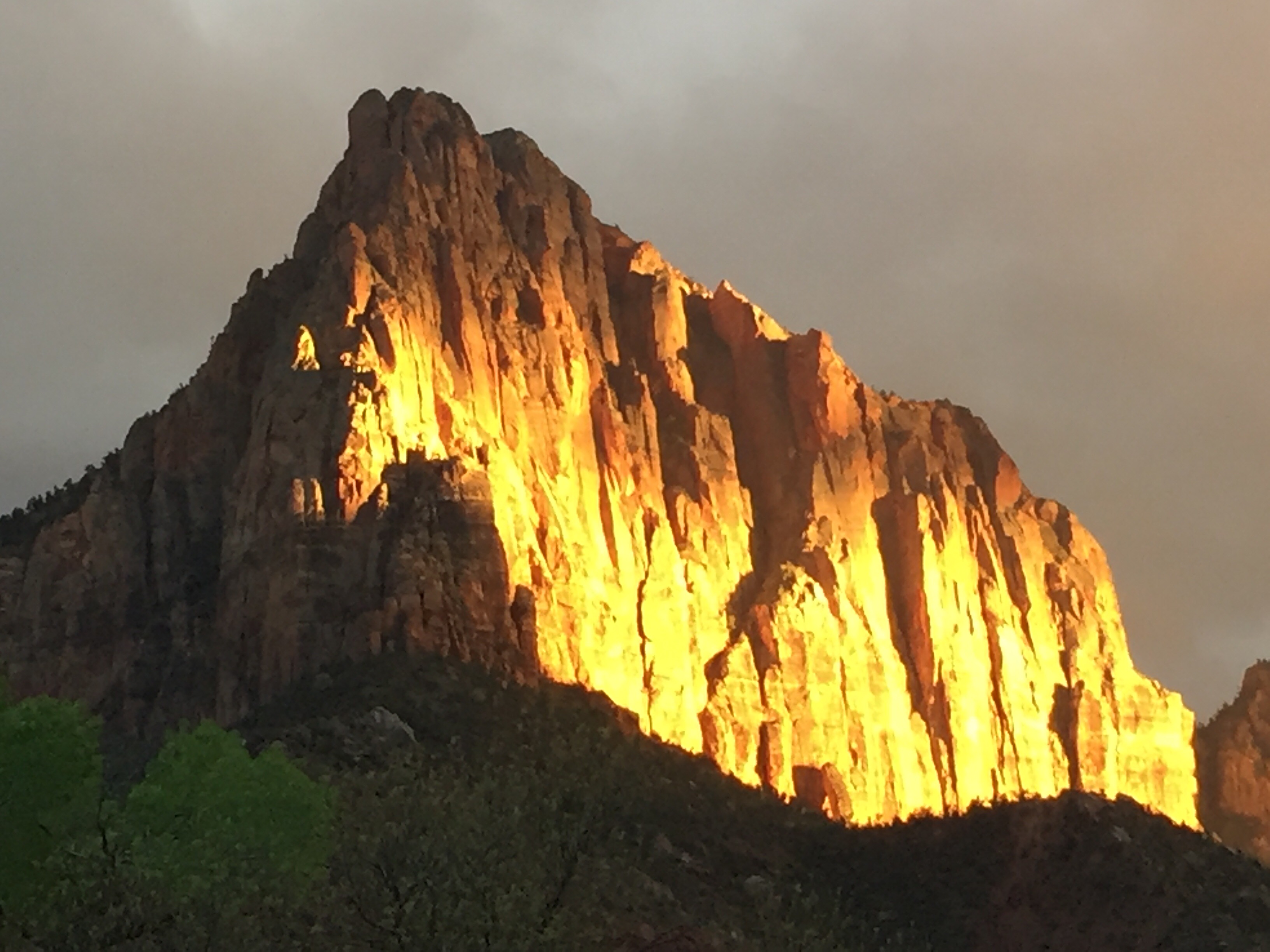 And then a tear in the clouds, the late day sun broke through and the Watchman seemed to burst into fire.