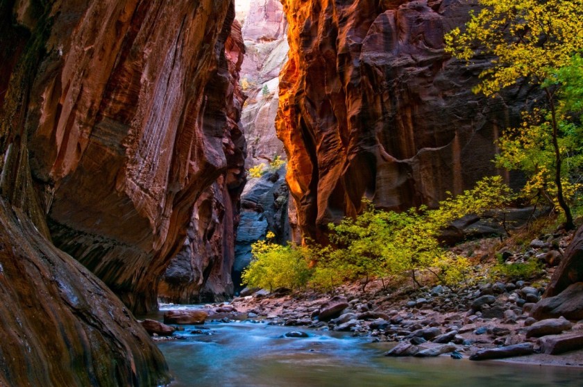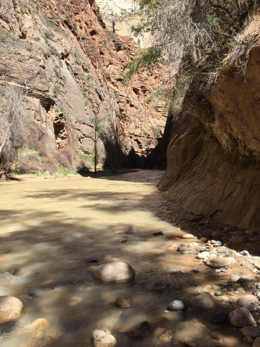 We followed the Virgin River up the canyon on the shuttle bus and then set off on a 2 mile hike to the narrows.