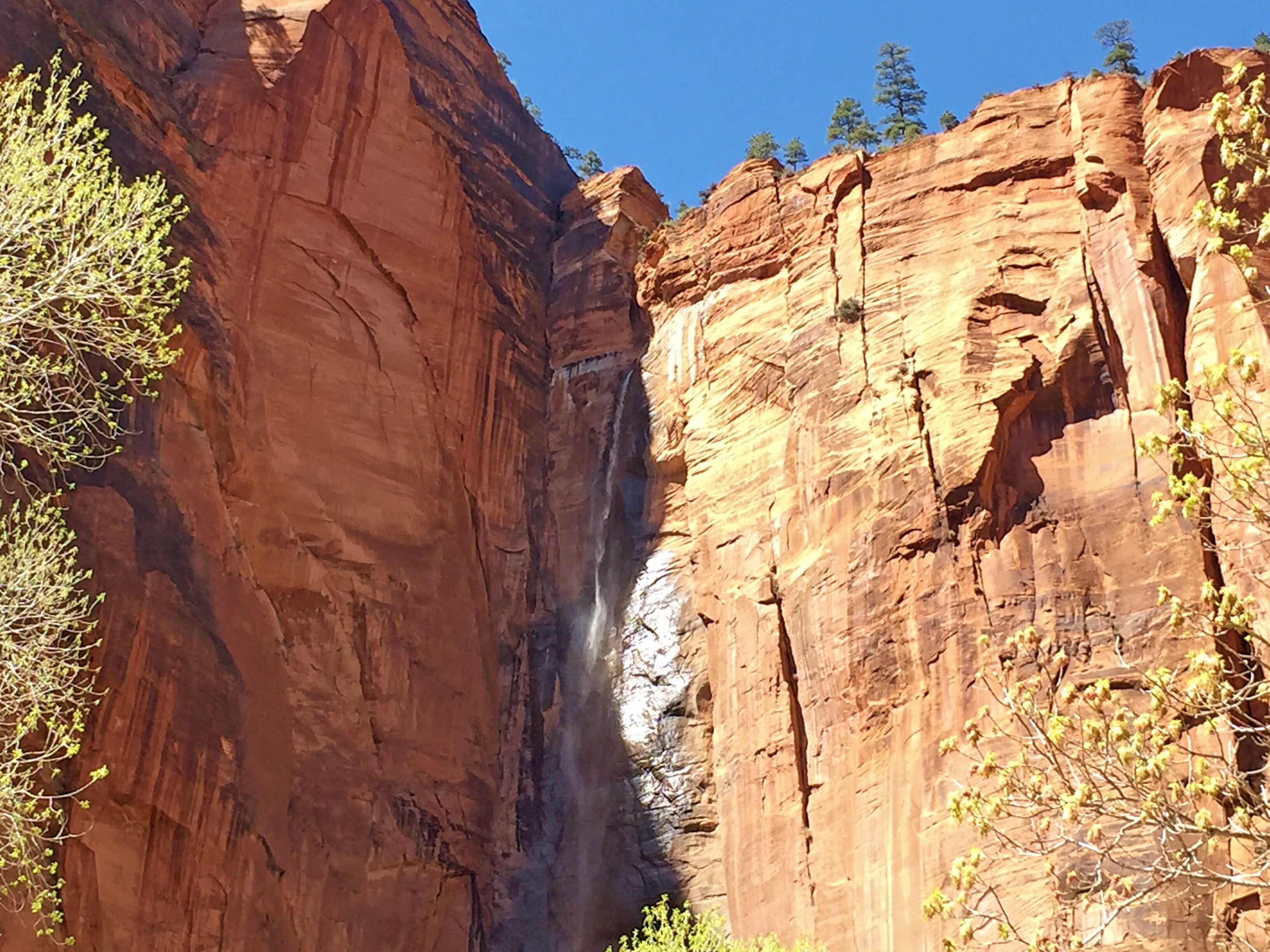 Water seeps down into the rock above until it hits a harder layer and then flows out through the side of the cliff face as a waterfall. In each of these locations, new side canyons begin. In another million years maybe we could walk up this new canyon.