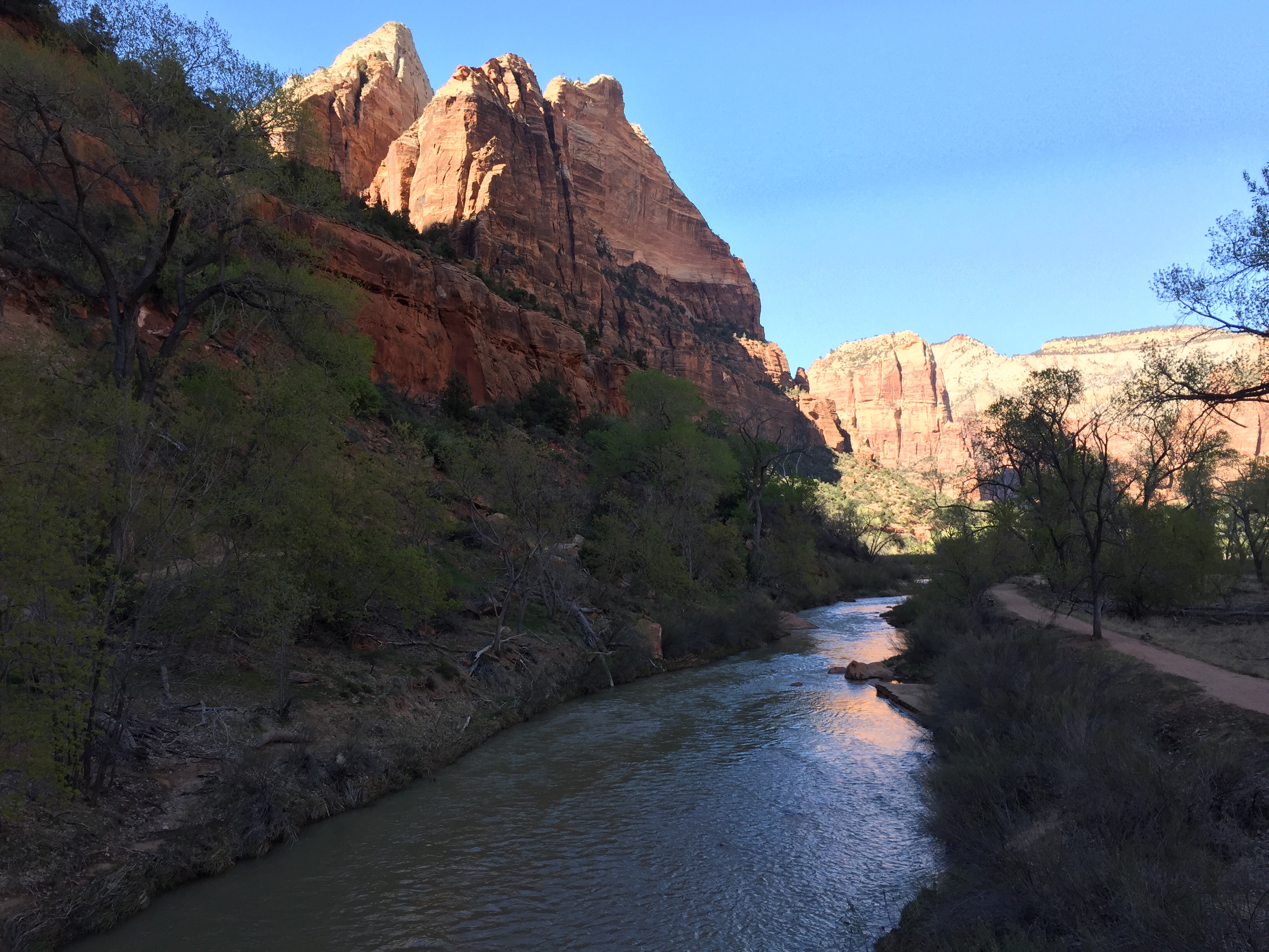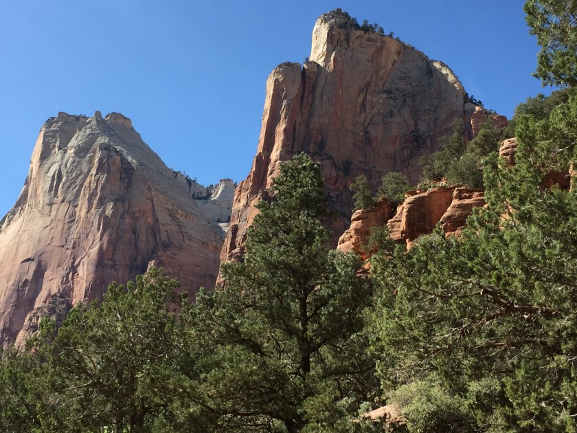The trail was headed for the Court of the Patriarchs, three very tall peaks along side of a side canyon.