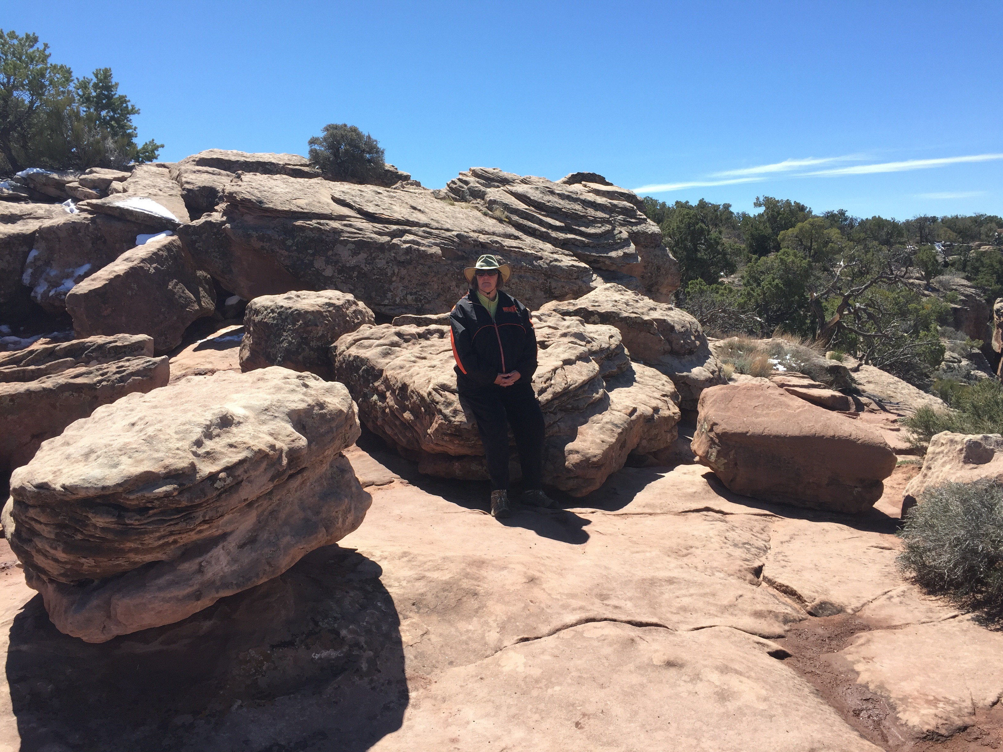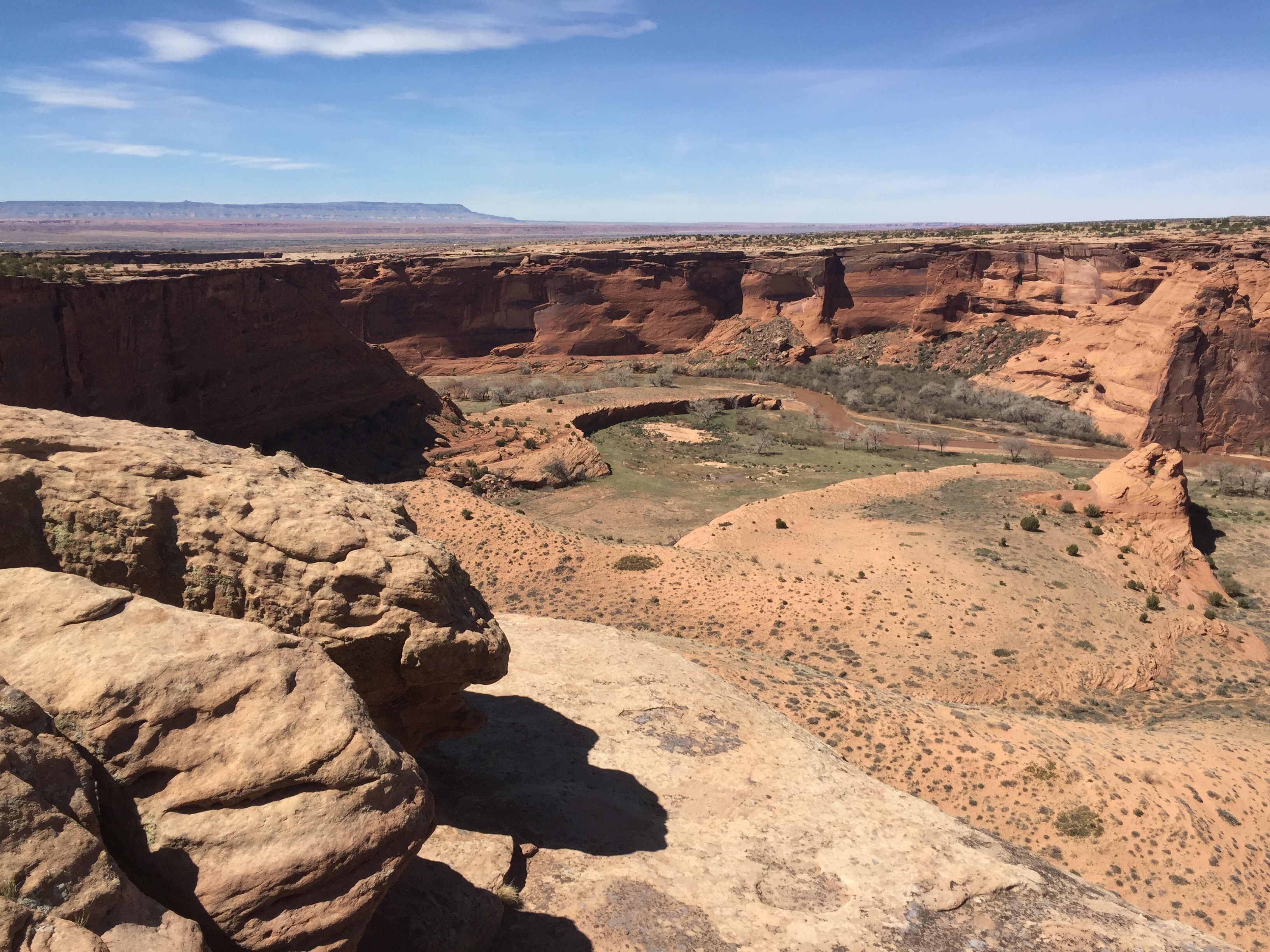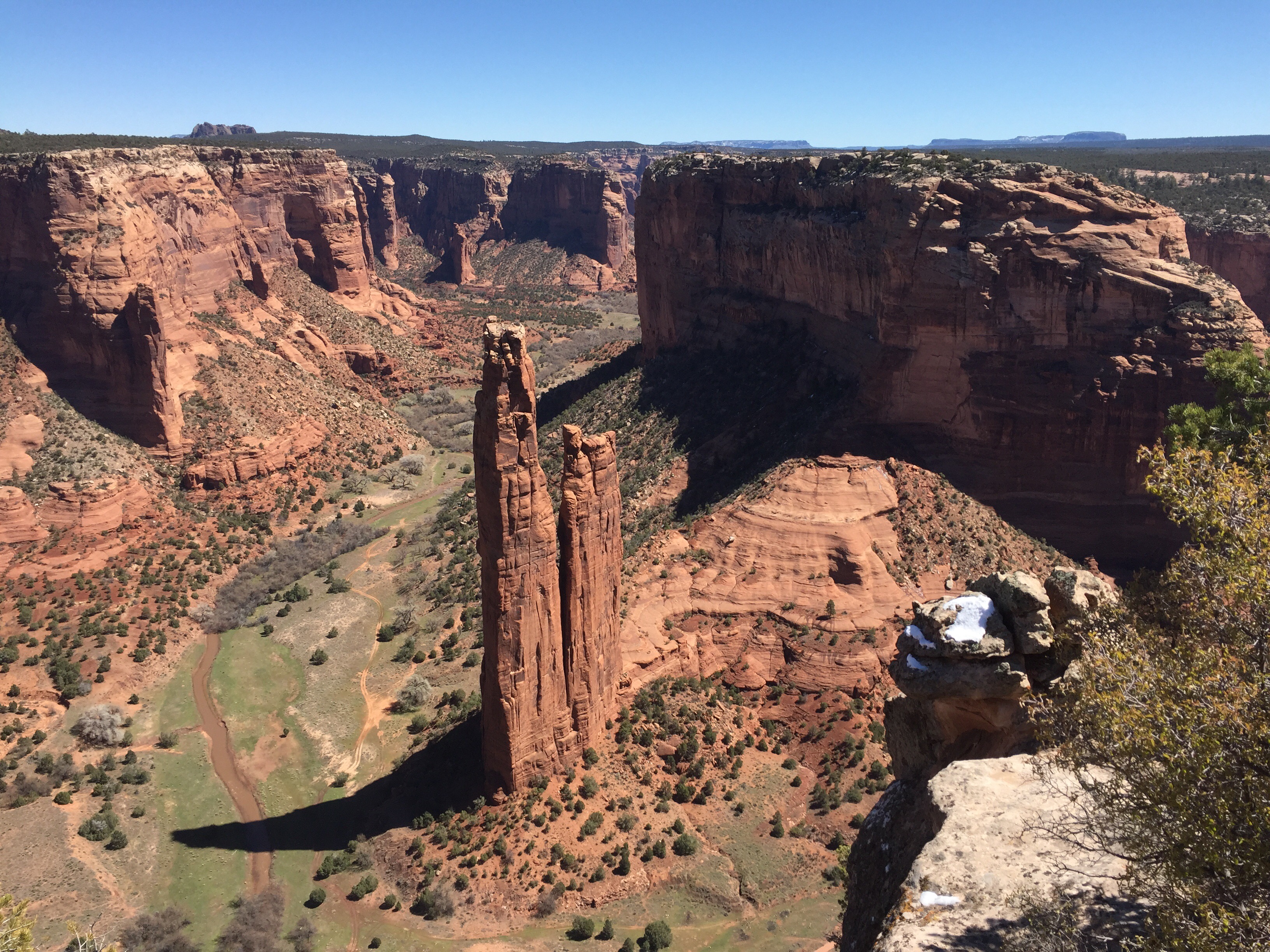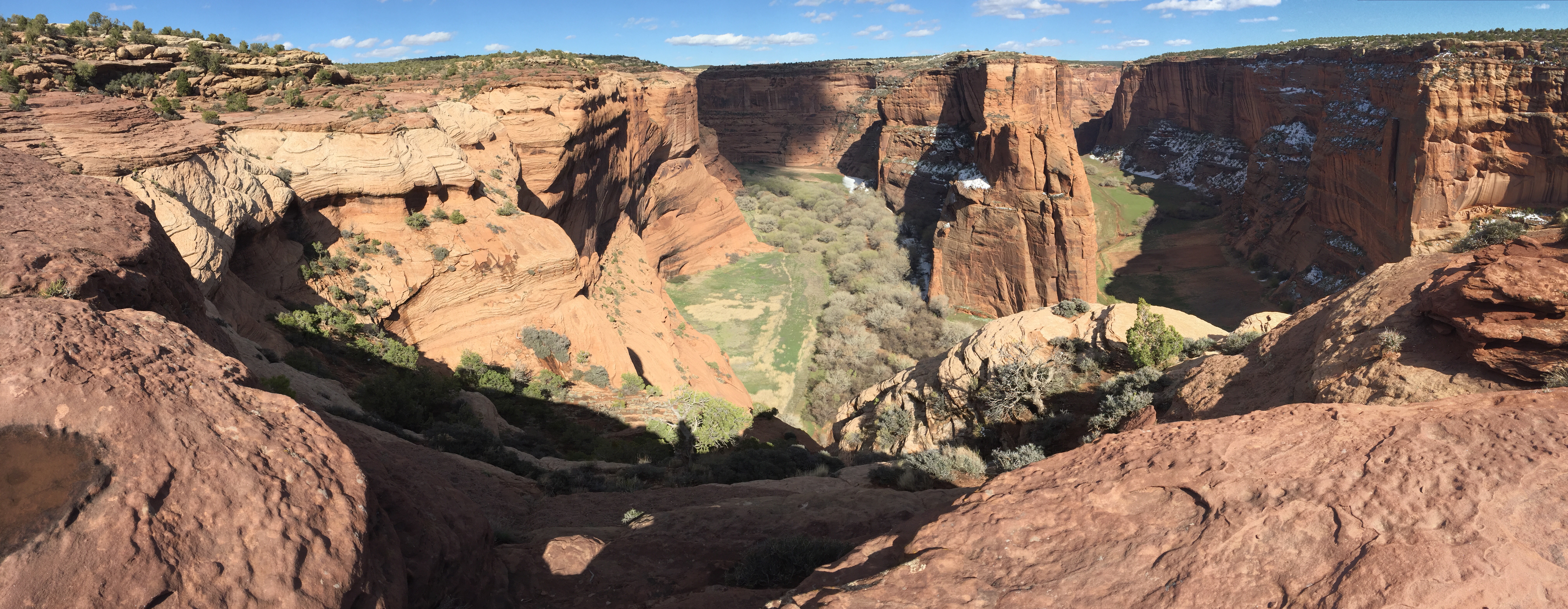 It was cold here at night, about 7,000 ft elevation. Snow still in any shady areas. There are roads in the canyons and fields. The Chinle Creek runs all year long.