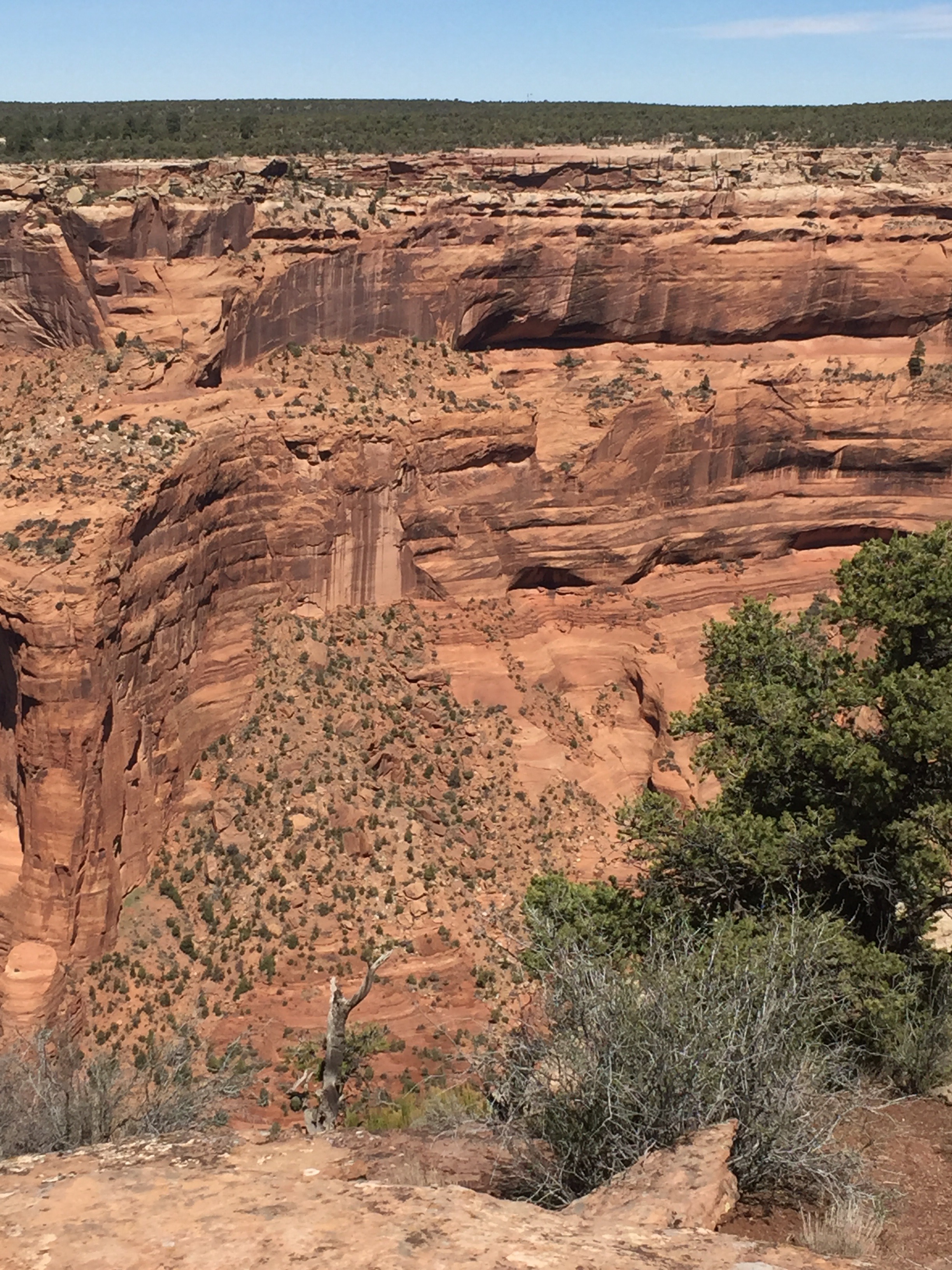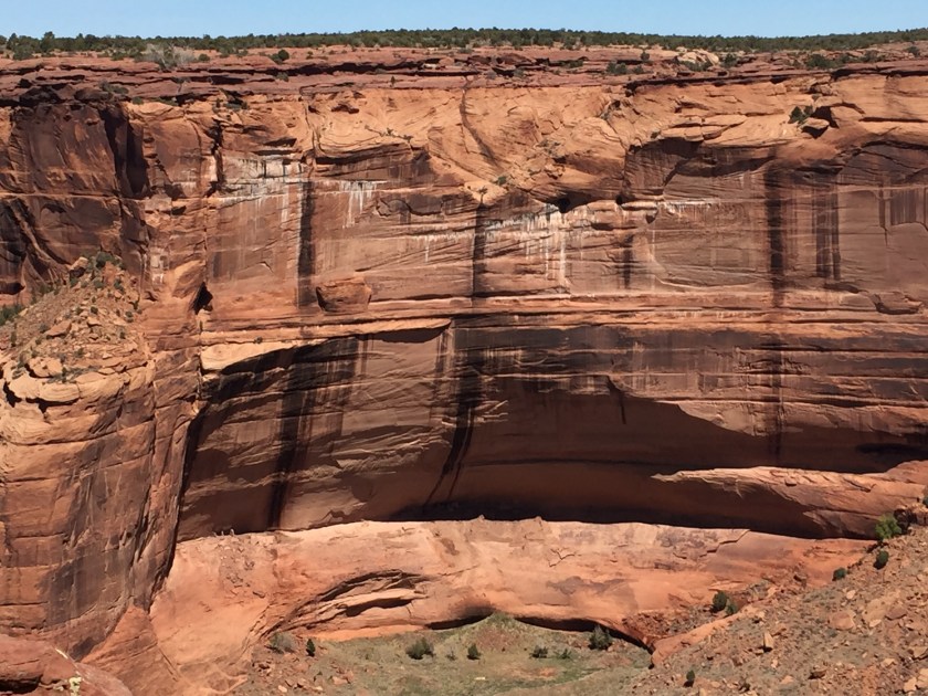 And shear cliffs. Right in the center of this picture at the bottom of the cliffs are ancient stone cliff houses. The stripes on the cliff faces are from water.
