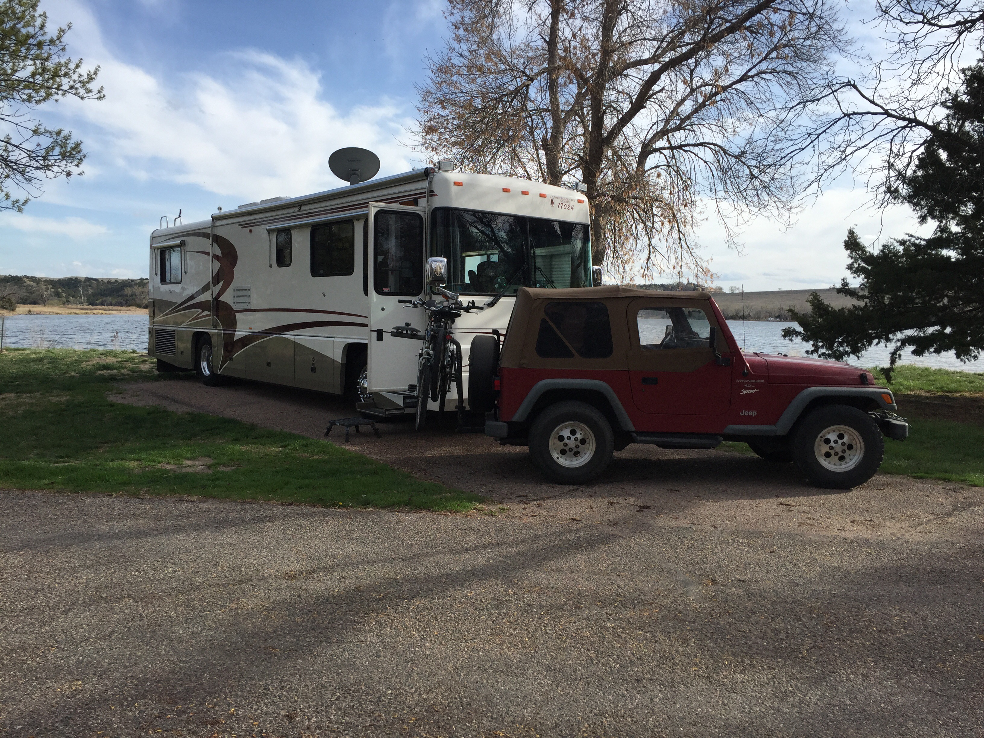 And weather was an issue. So we went for the I25 through Raton Pass route. This is the fourth time through there for us in the coach, pretty easy as mountain passes go. And then up towards Colorado Springs. This was a long day. We stopped at a Walmart. Did a few laps around the inside of the store and an early night. The next day we did a diagonal from Colorado Springs to I70 and then east for about 150 miles and then north on US 385 to I76 and then east to I80 and Ogallala, Nebraska.