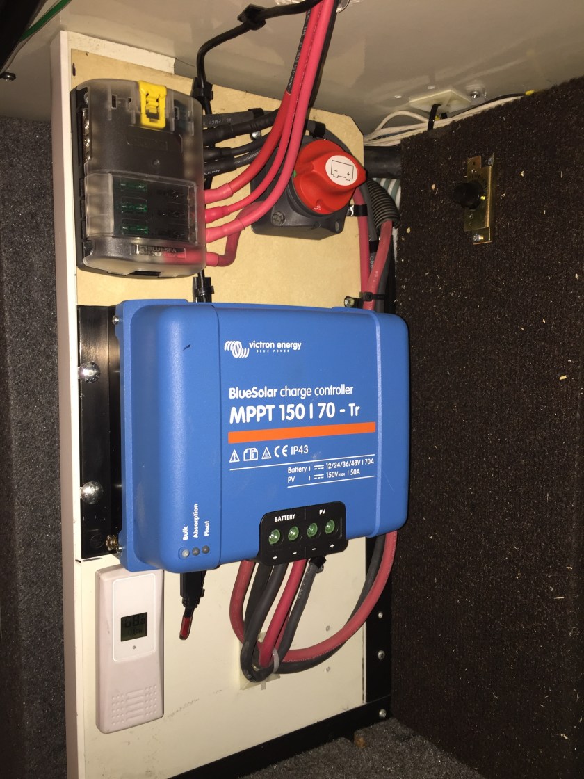 - Solar panels with wiring, switches, fuses and a solar charge controller.