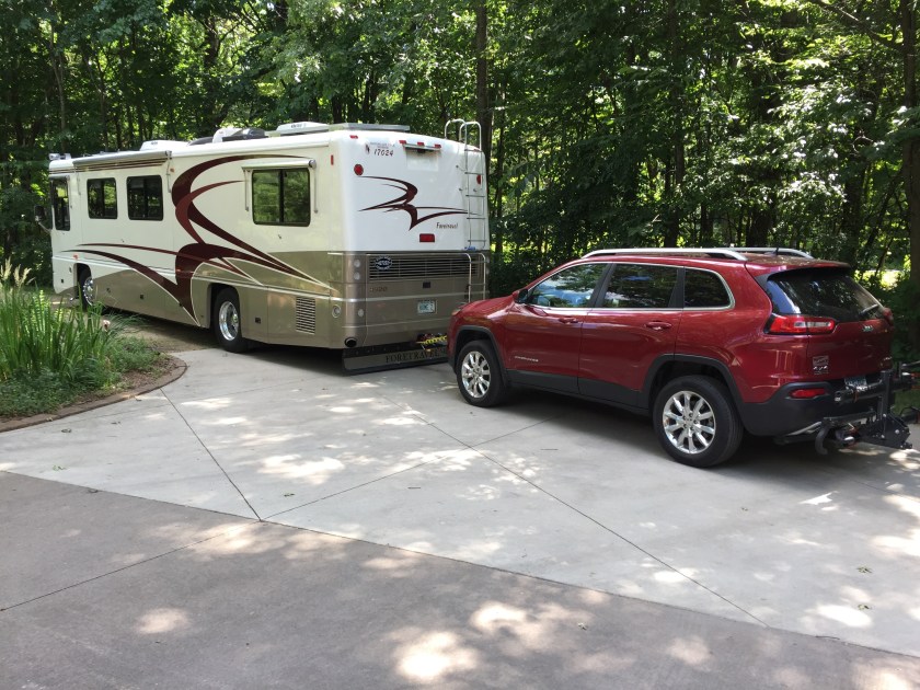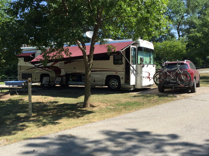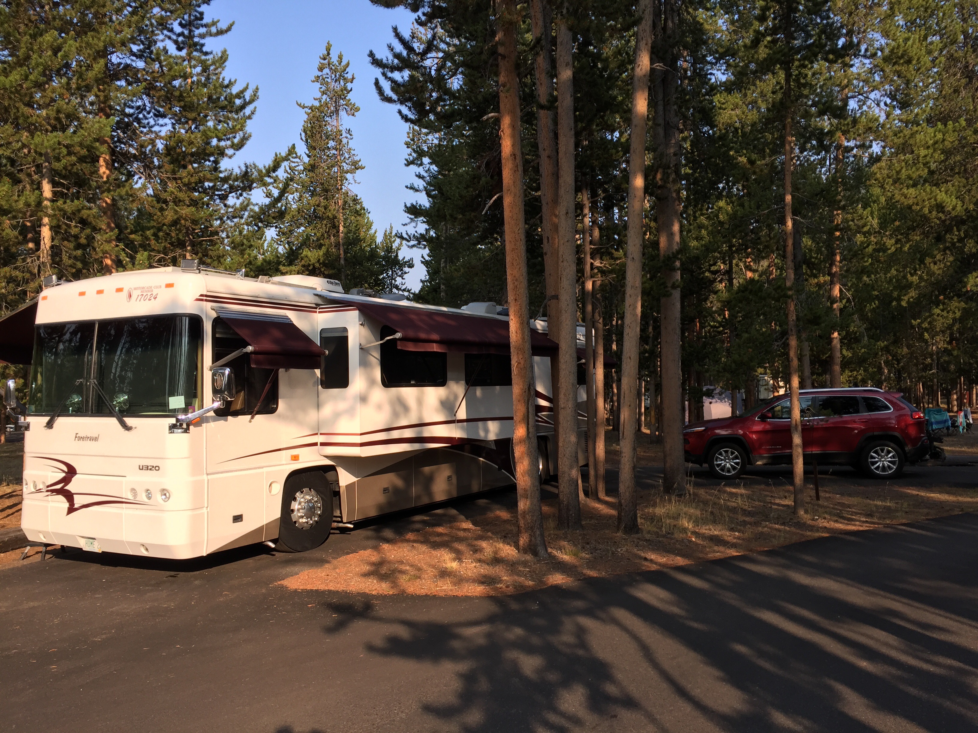 The solar panels are putting out an astounding amount of power. Even in the shadow of trees and a cloudy day they are adding more than the refrigerator uses. Our best day so far was in a sunny campsite on a clear day, more than 5.2 KW into the batteries. 20-25% of the max possible is still going to be about 2.1 KW which is what I was using as a planning point. This is more than enough to run the refrigerator and our other loads with some care for four or more days without any generator support. We spent a week at Madison in Yellowstone and ran the generator once for two hours. We need lots more time and experience with this to know how to balance loads and get the best results.