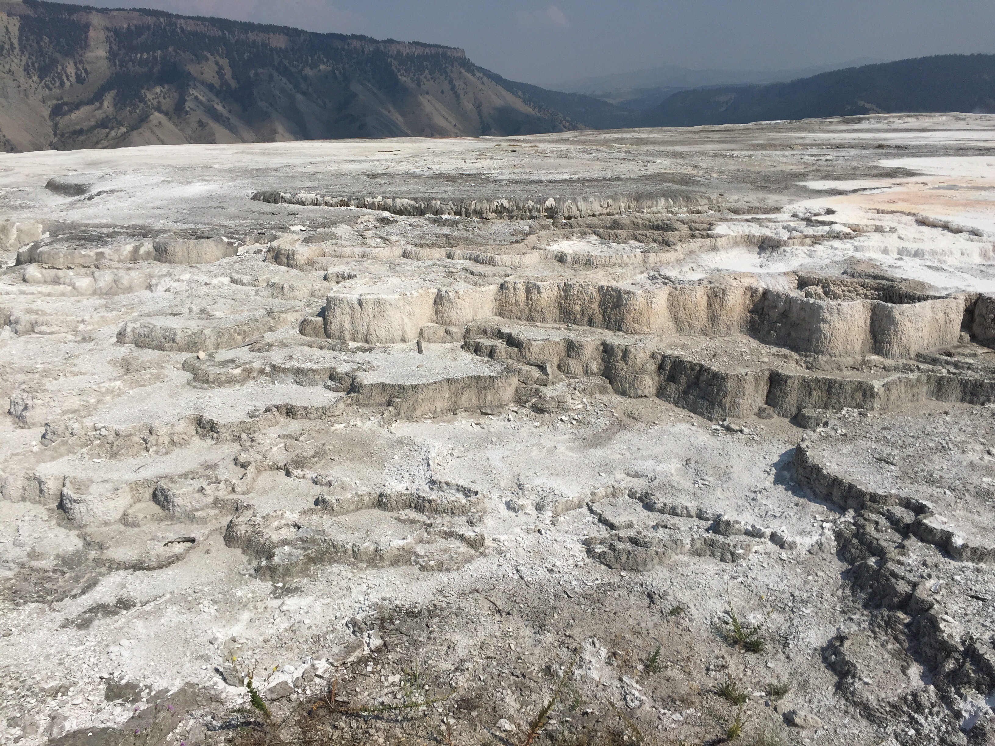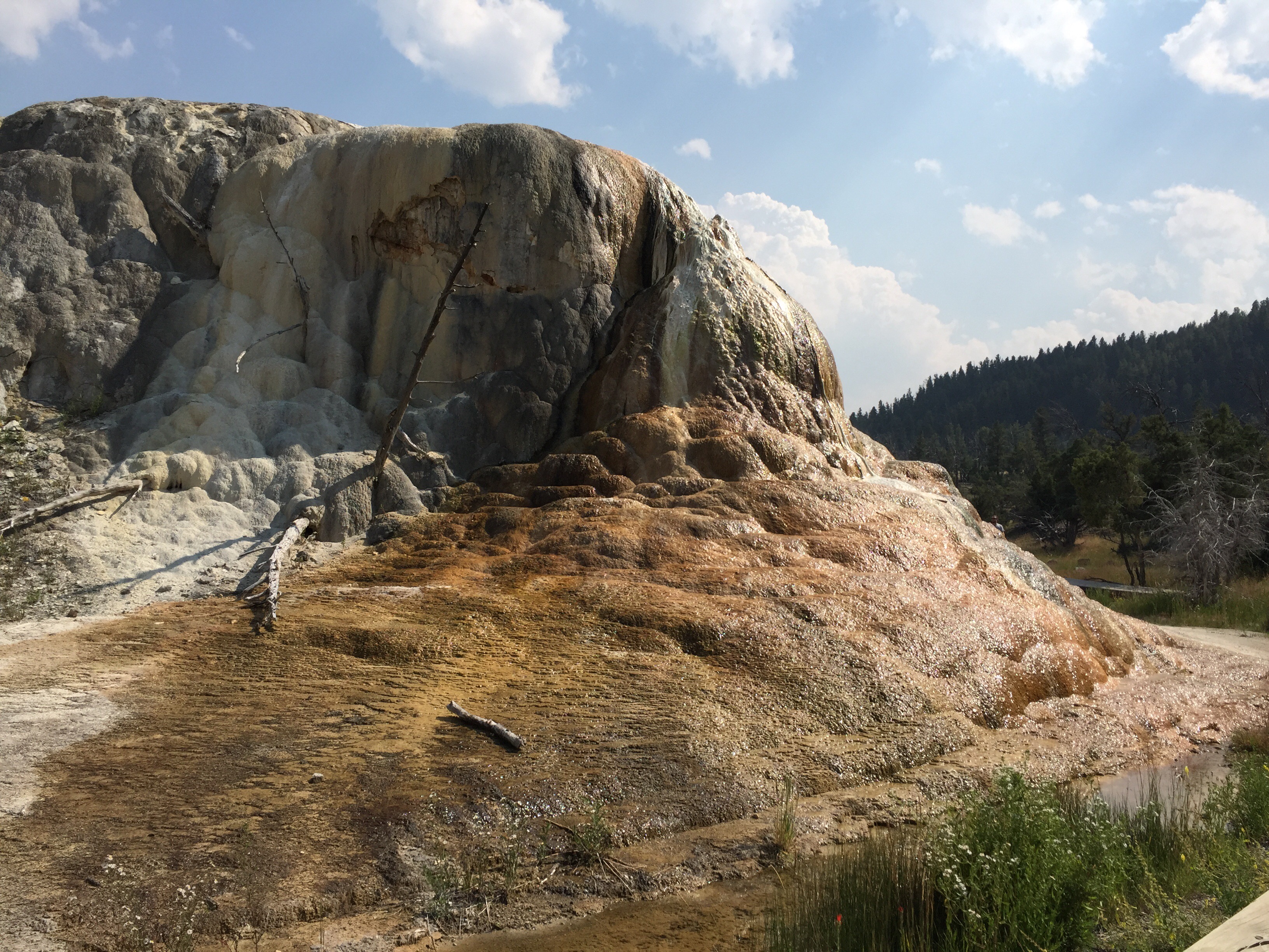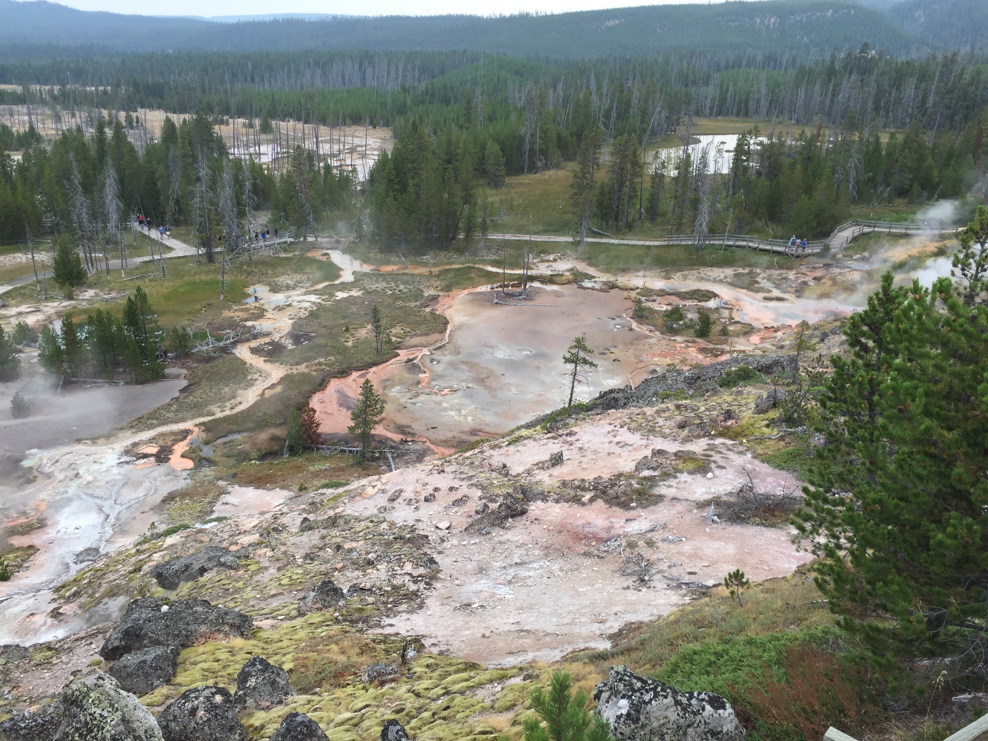 The red area was just like the hot springs in Mammoth, a hard layer of built-up mineral deposits with water flowing over it. This water was very hot.