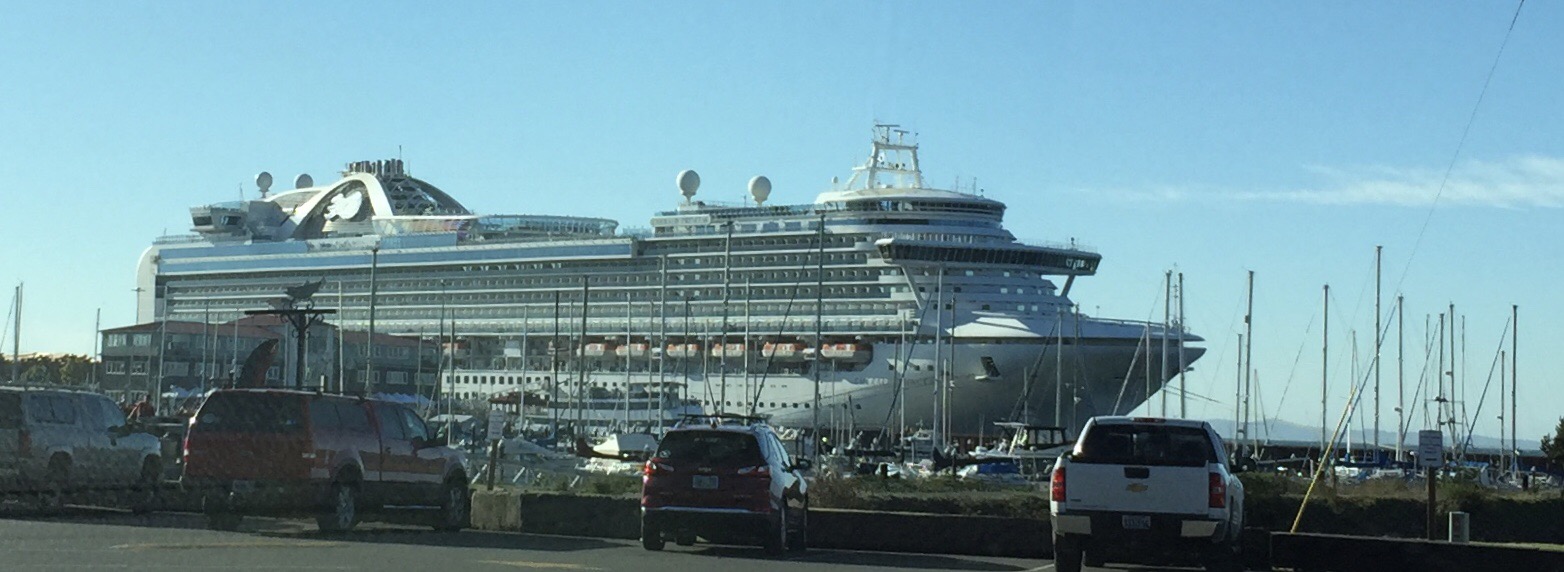 Down at the other end of the waterfront there was a cruise ship (big).