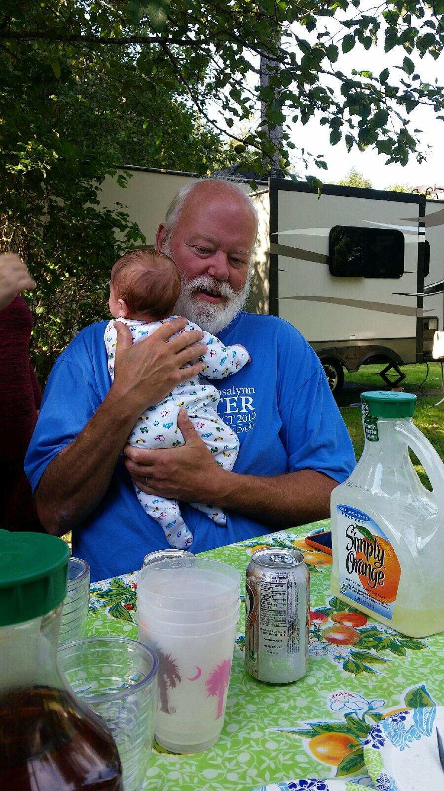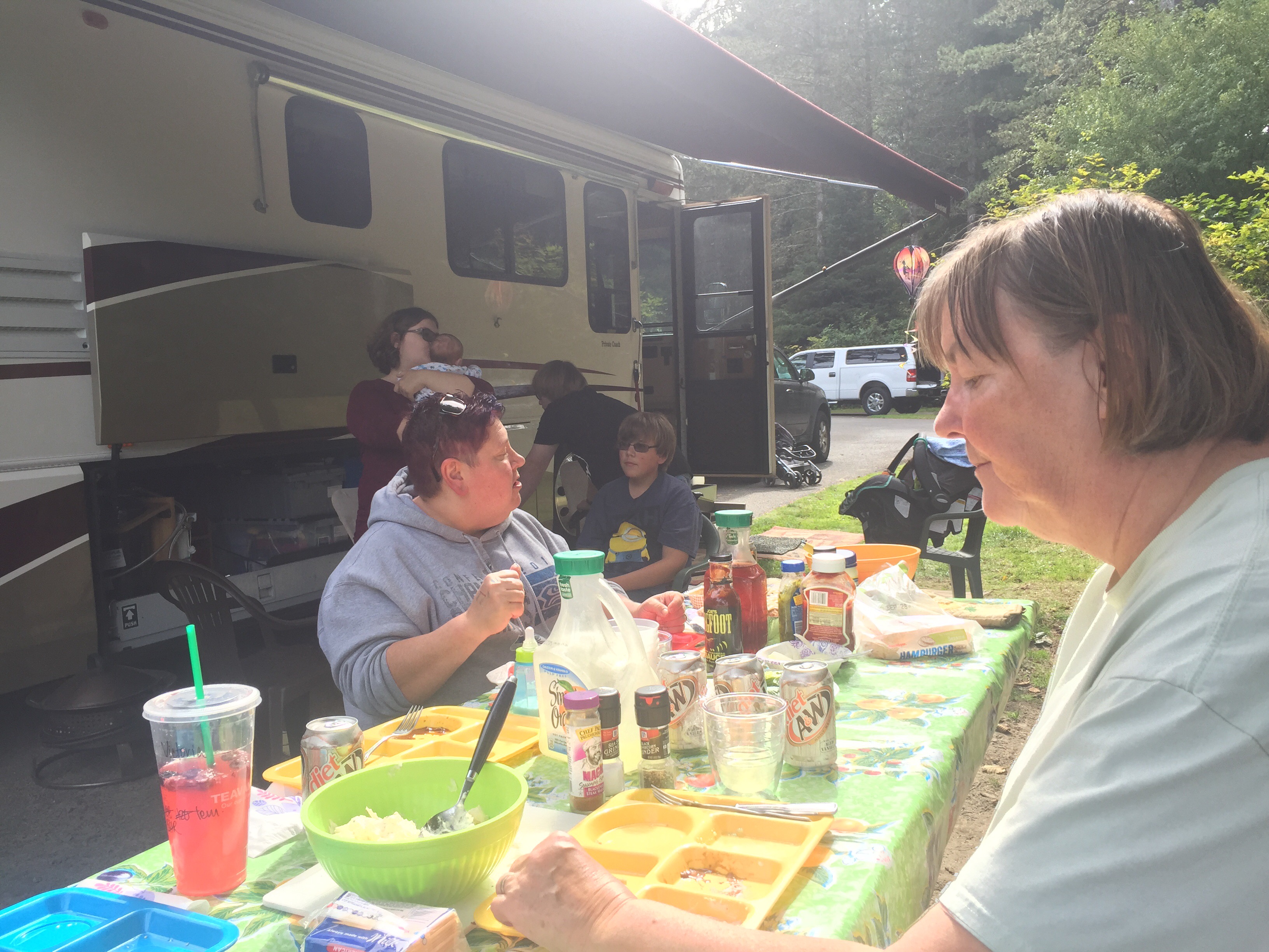 We had a really nice campsite. But cell phone service was terrible. It was hard to figure since this park is very near an urban area. Our great great nephew (yikes! That means we are a great great aunt and uncle) (he is only 2 months old) lives with his mom and our great nephew and his Grandma in St Helens, OR about 2 hrs upriver. They came down for a visit one day.