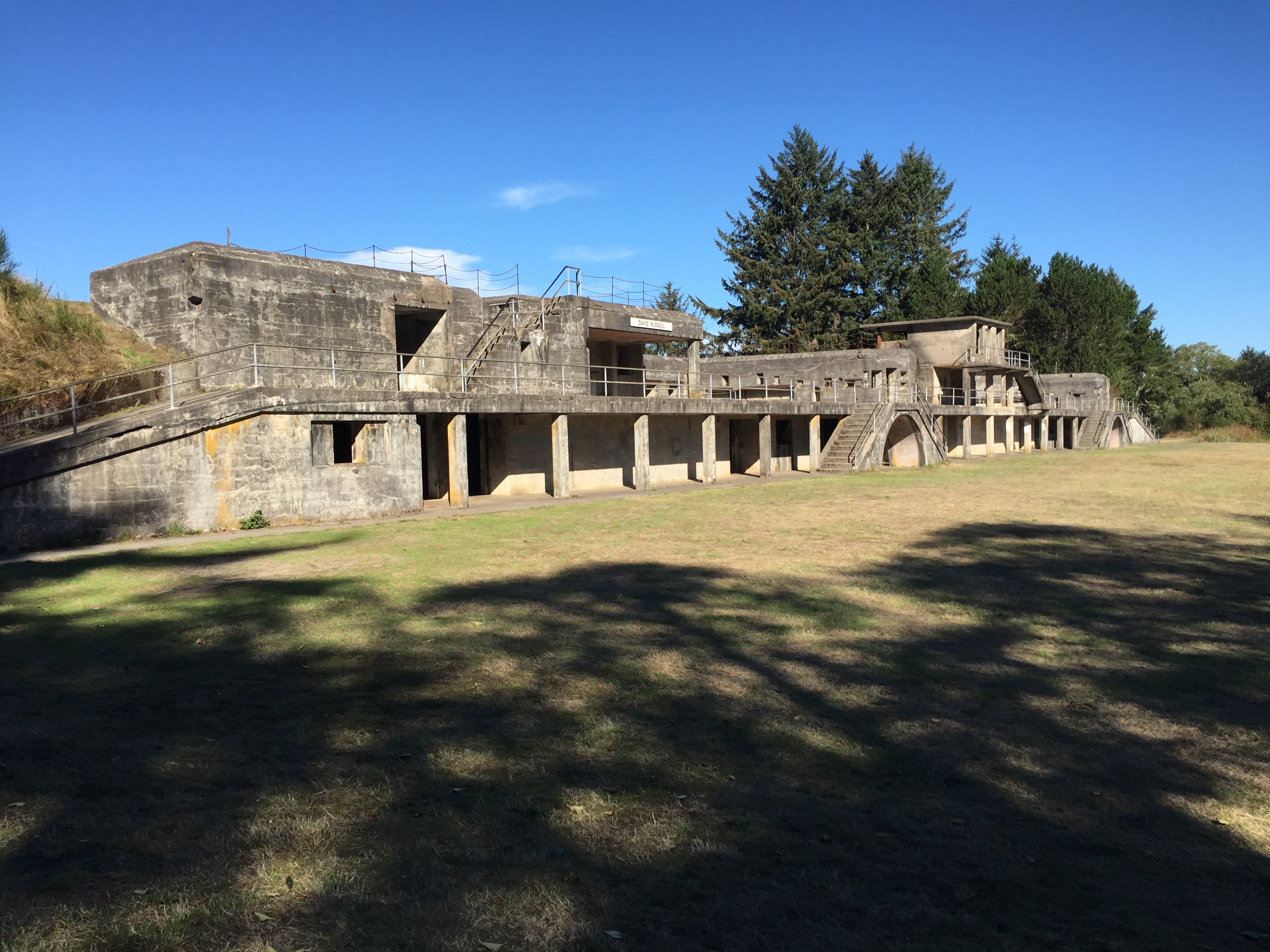Battery Russell was shelled by a Japanese submarine one night in 1942. 17 shells landed, none doing any real damage. It was cloudy and foggy so no one could see the submarine. The sub commander had no idea of the guns emplacements that could easily have sunk his boat if he had been seen. This is the only military installation in the continental US to come under fire during WWII. An oil field near Santa Barbara had been shelled earlier from a Japanese submarine. Did you read about that in grade school?