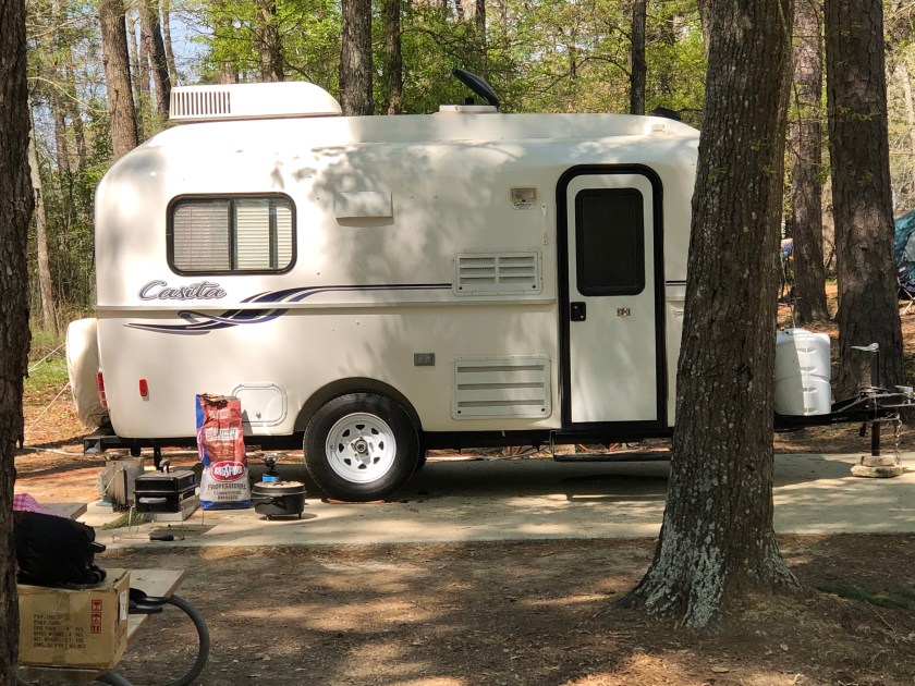 Our friends, John and Caroline were wondering about a Casita or Burro. These are small and very compact. Duck going through the door, maybe stand up right down the center where the roof has a hump in it.