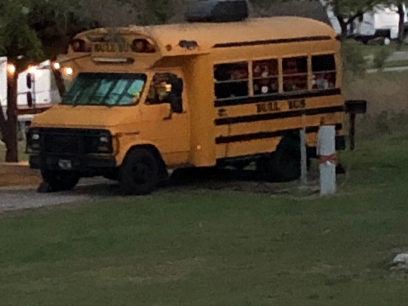 We got back to the campground a bit sore in the butts. It was almost 10 miles. We did this ride several more times and discovered that the grocery store was only another quarter mile so we went there for treats and even lunch one day. Somehow I have no pictures of us. But we saw a bunch of interesting campers.