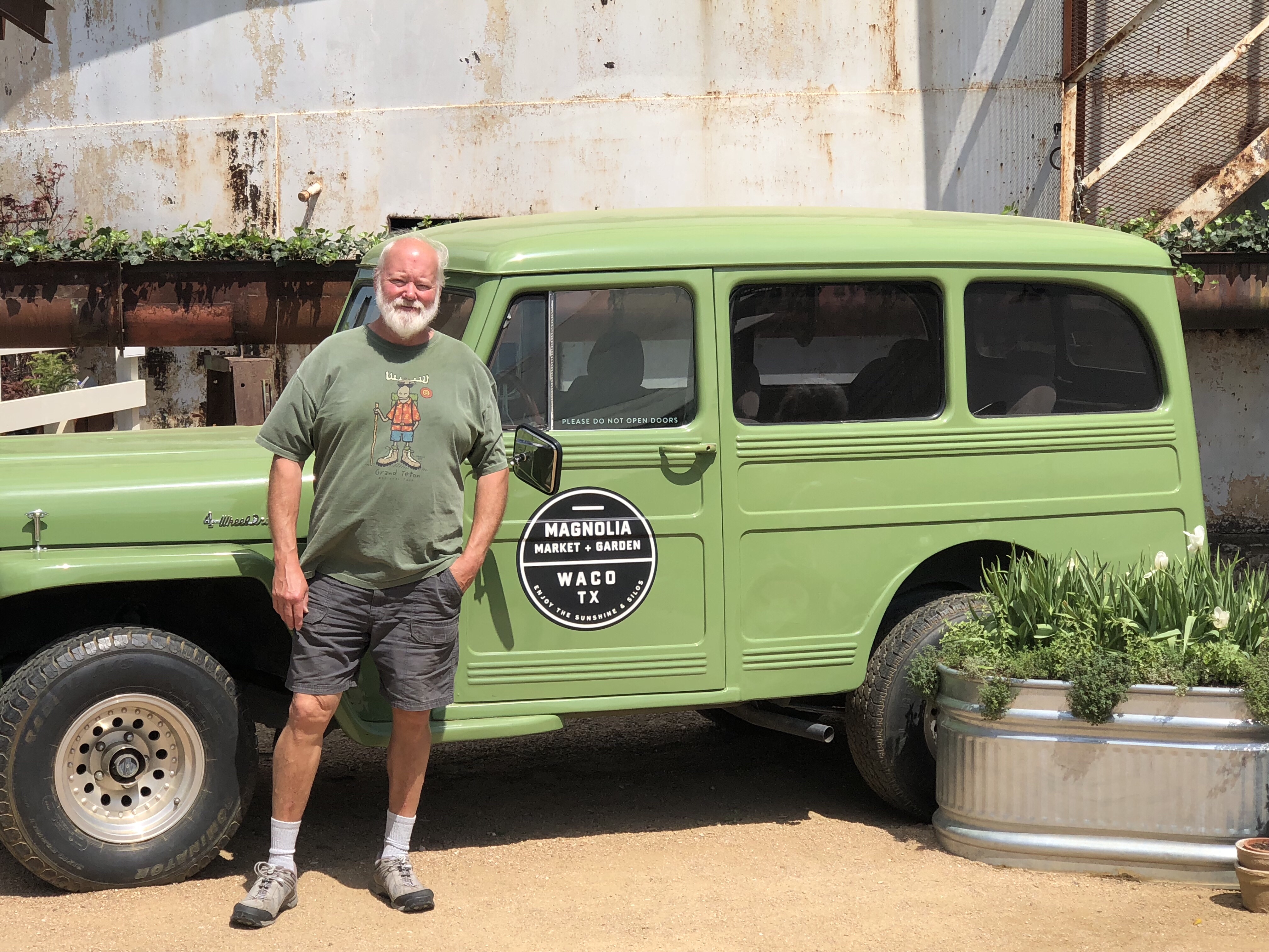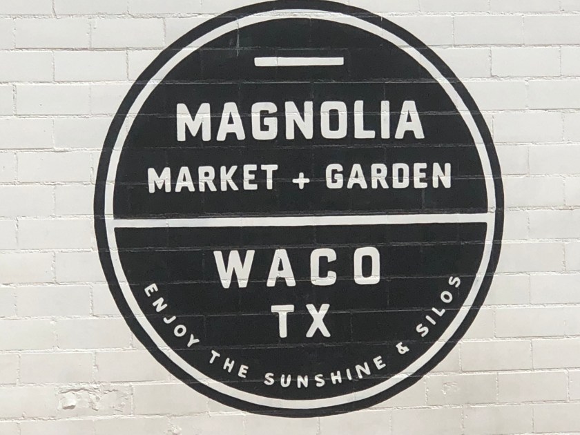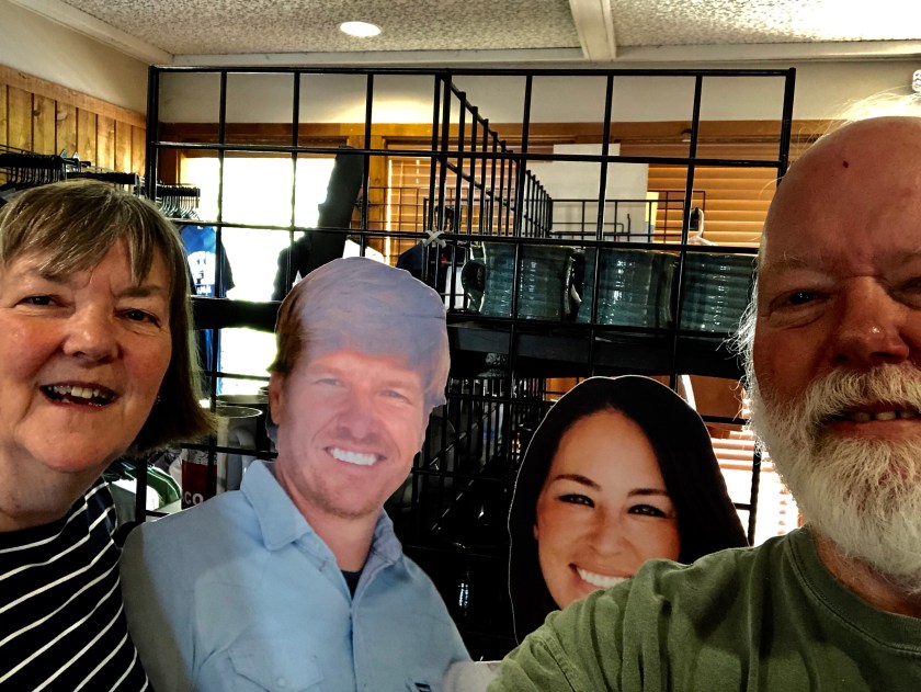 First stop the Visitor’s Center where we learned Waco is bigger than we thought and it is the home of Baylor University. Probably a lot more too but we were on a magnolia mission. There was all of the ordinary Texas memorabilia and a wooden cutout of Chip and Joanna. It might have been shiplap, I forgot to look. We were surprised that if this was life sized then they were much shorter than we expected.