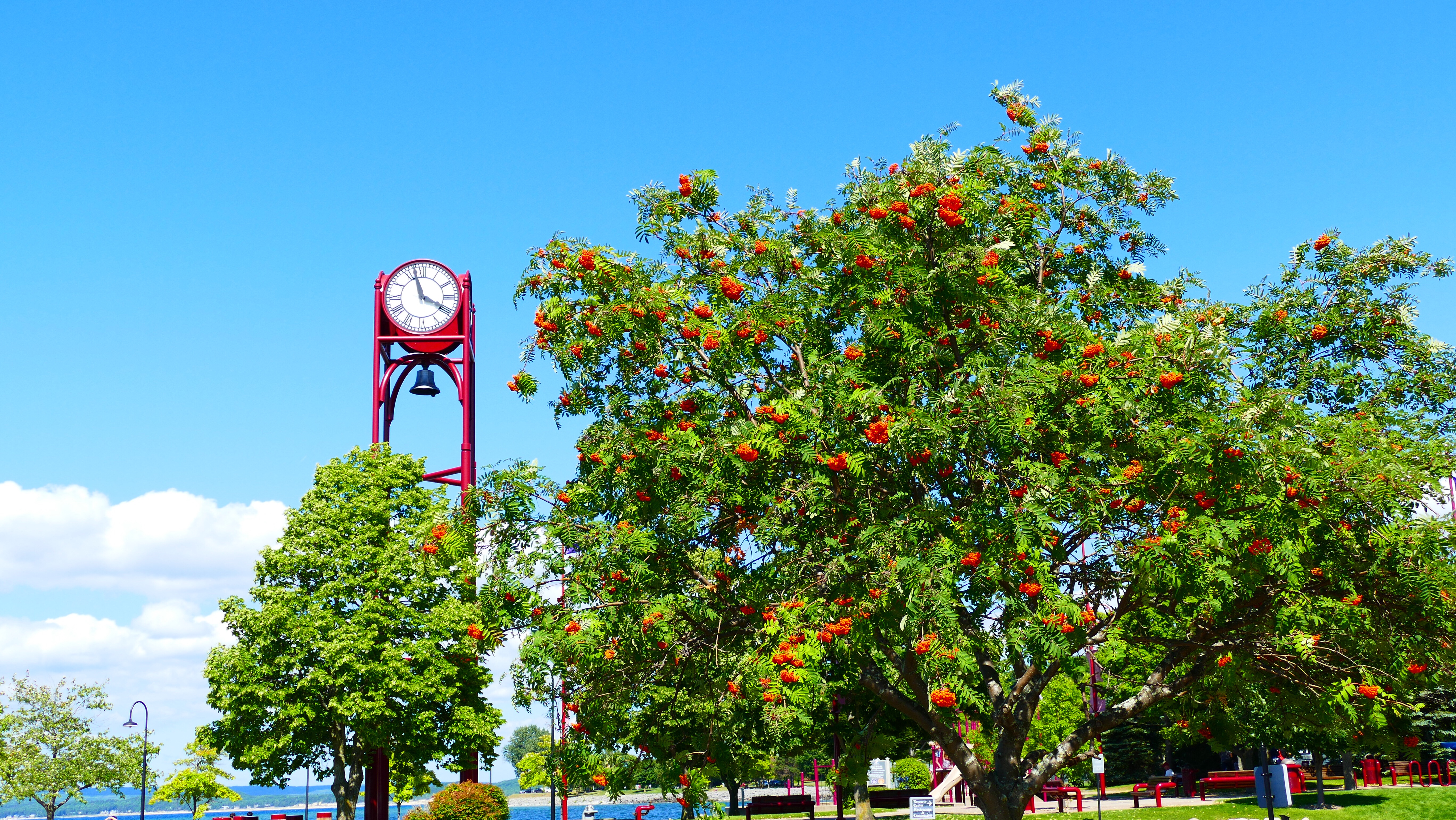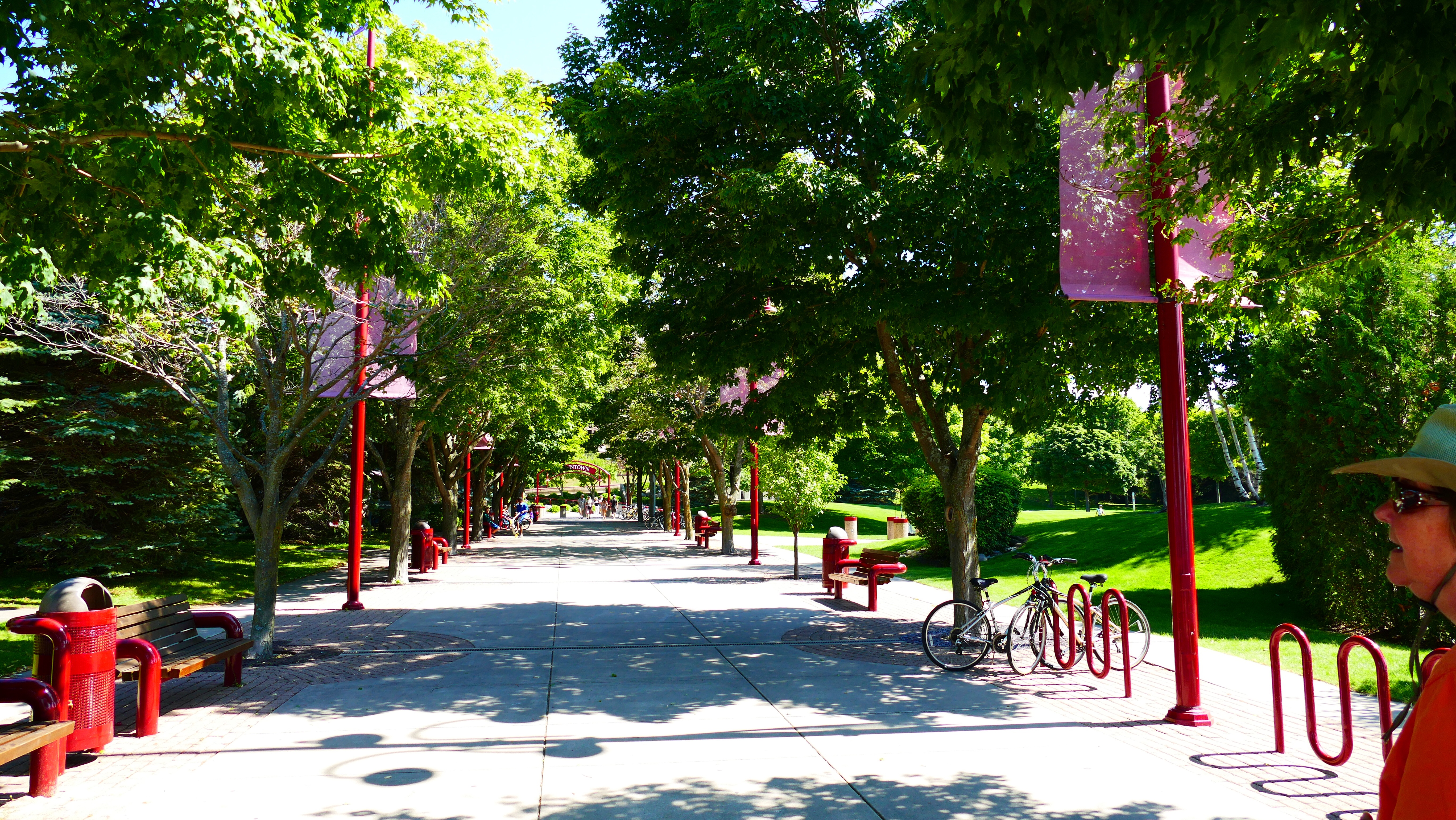 A nicely done park with lots of trees and a clock/bell tower which rang on the hour and half hour.