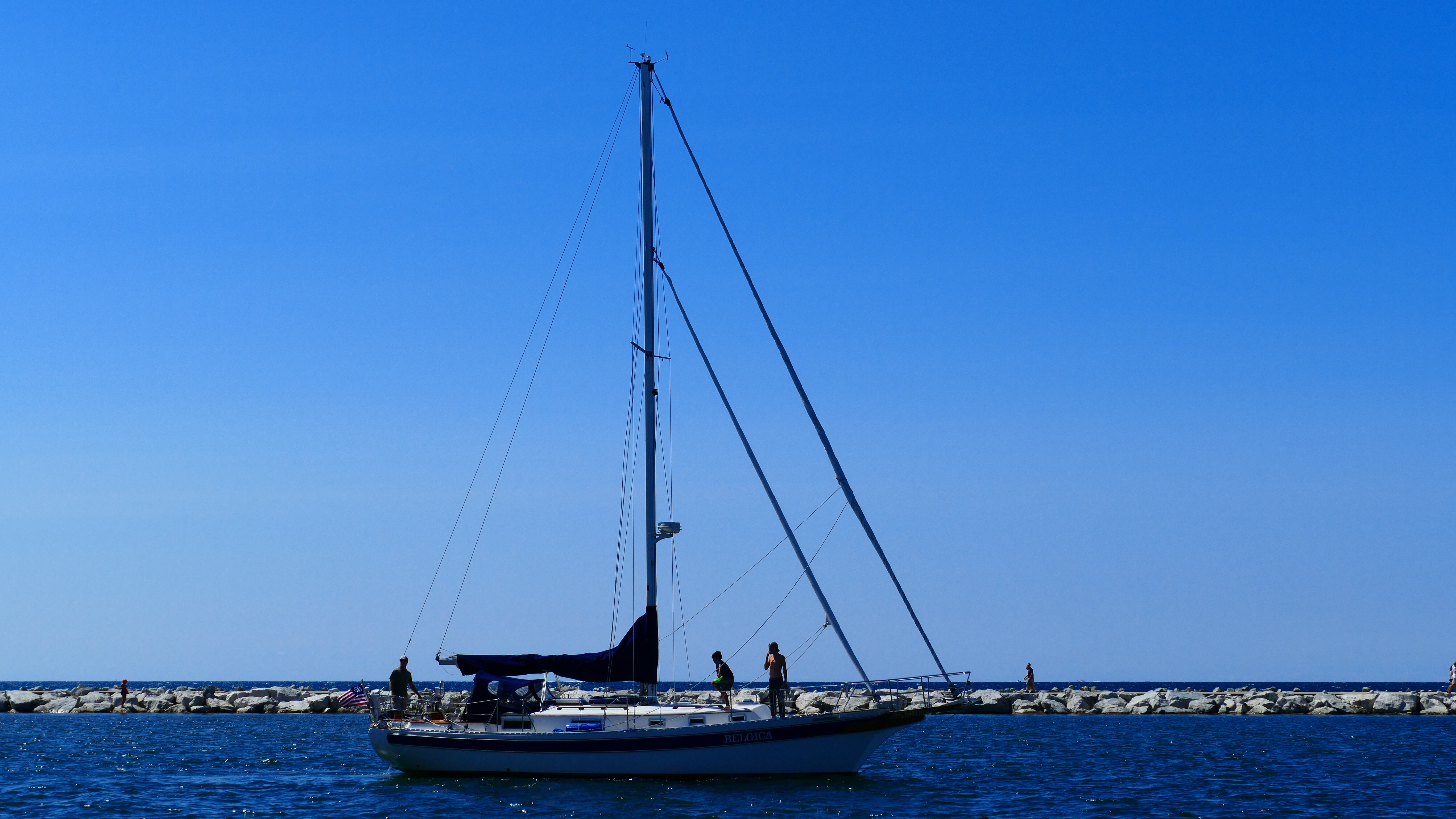 The marina was protected by a jetty with a small light house. Some people were out there. All the while we were there more and more gathered. It appeared to be some sort of event. People were jumping off the jetty into the water while the rest cheered them on.