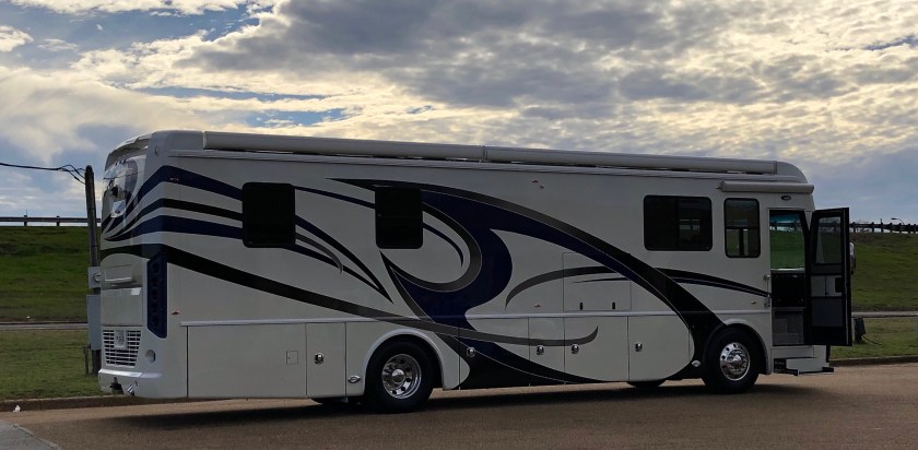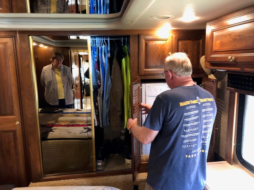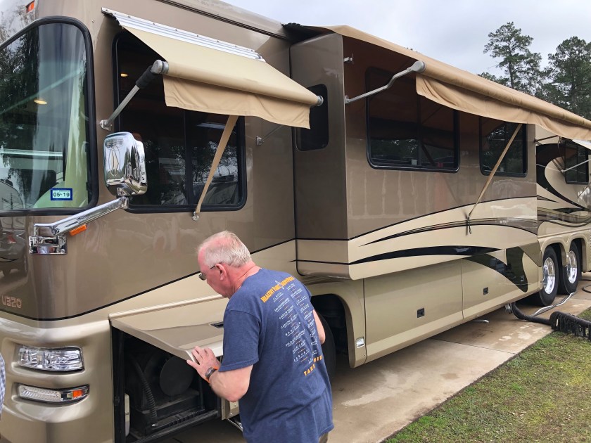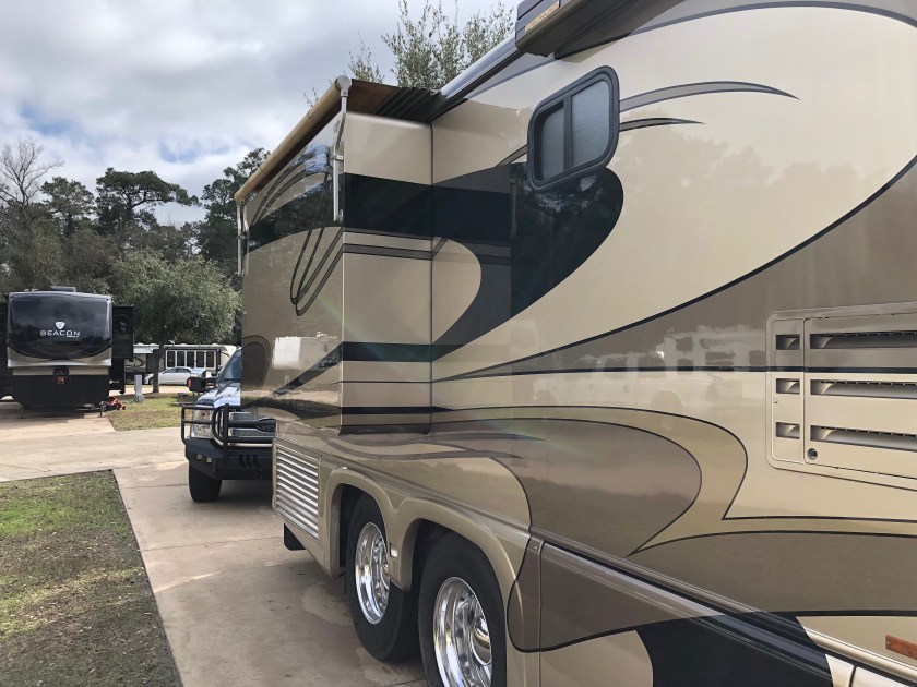 The next morning we got fuel, about 50 gallons. We normally run between 90 and 150 gallons when driving across country. The coach holds 194 gallons. I don’t see much sense in carrying around an extra 400 lbs of fuel.