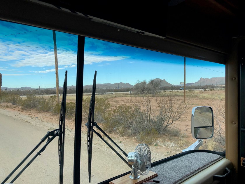 We split the drive from Kerrville, TX to Deming, NM into two chunks. We thought about going to Davis Mountains State Park near Fort Davis and then up to the nearby McDonald Observatory. It was an extra 2,000 ft elevation increase and a winding twisting road. Maybe next time. We thought about stopping in Ft Stockton but that left a long second day. So we headed to Van Horn a ways west of where I 10 and I 20 come together.