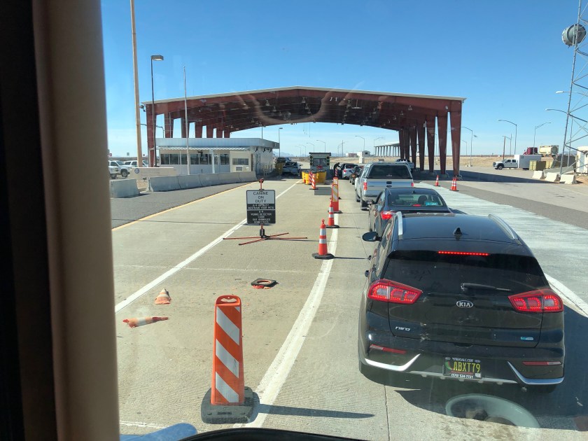 Except where the entire west bound lanes get diverted through an immigration check point. We waited our turn, drove up past dozens of cameras where they saw we were from Minnesota and that we were older white people. They just waved us through.