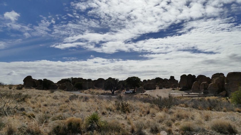 We drove the Jeep Cherokee north one day to Silver City. It was about 80 miles. We had heard it was a nice place to visit. Along the way we stopped at City of Rocks State Park. It was pretty interesting. It is old volcanic ash and rock formation. Most of the surrounding area has long ago eroded but the particular area was harder and is still here.