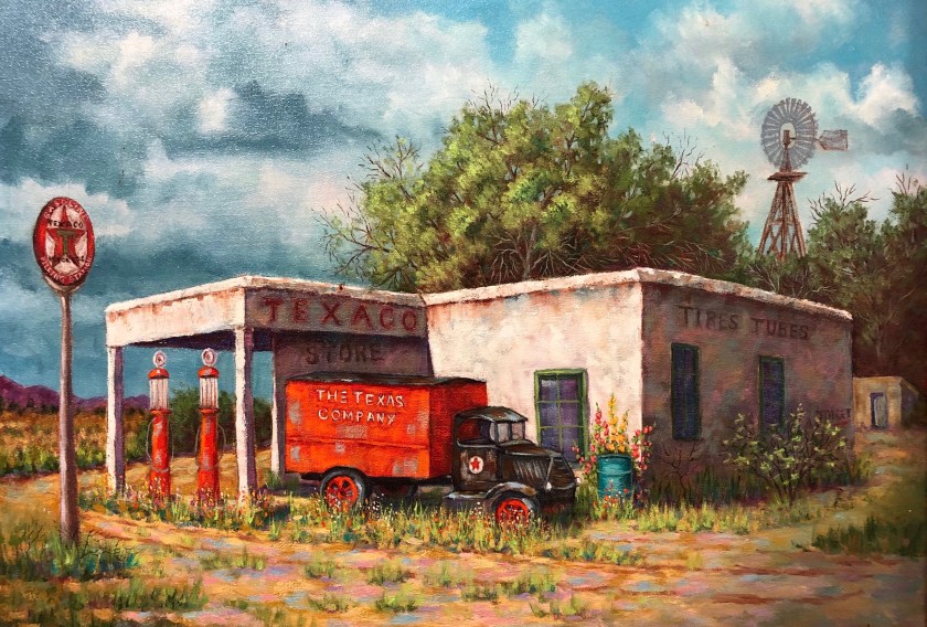 One of the volunteers at the museum told us she grew up in the Deming area and knew where this Texaco Station was. She said it was gone but the small building behind is still there.