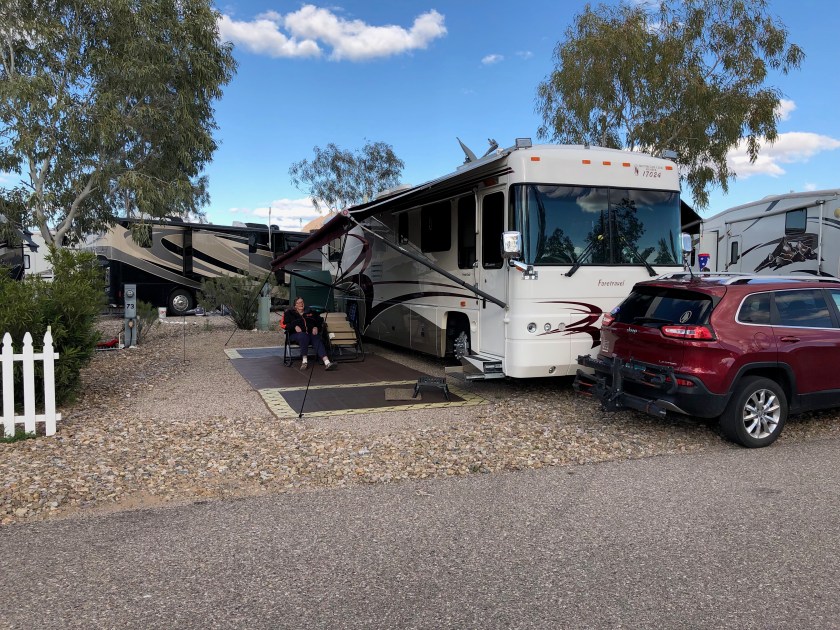 Another hour and a half or so to Deming. We stayed at an Escapees Campground named Dreamcatchers. We have been here before, an easy place to stop. There is a motel next door with a pretty good restaurant where we ate an early supper one day.