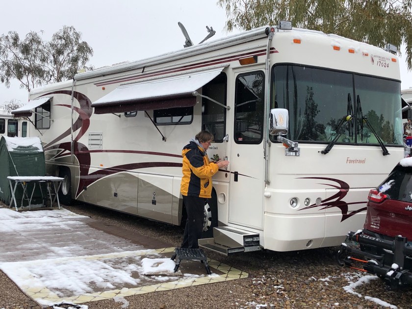We went over to Frank and Pattie‘s home in Rio Verde for dinner and laundry. Frank is Susan’s brother. They spend half of their time in AZ and half in MN. Soon maybe a bit more in AZ. Frank and I were busy talking about Verizon vs AT&T. Susan and Pattie were busy chatting about dinner things.