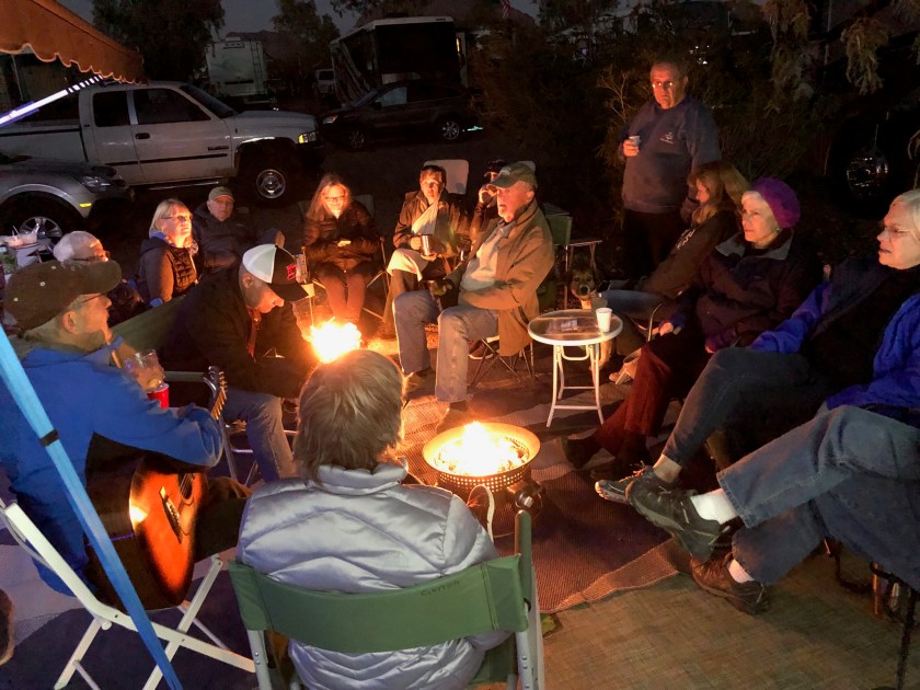 That’s Art standing up in the back of this two fire pit gathering. Glen, another fellow from Canada, brought his guitar for some very good music and sing along.