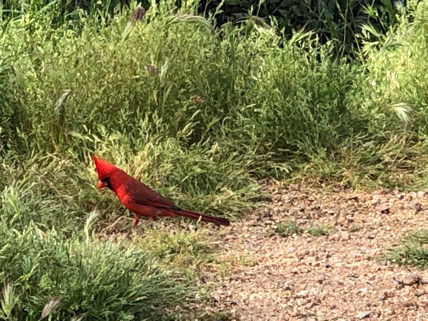 There is a pair of cardinals here that show up every day. They have a very distinct song compared to all the others here.