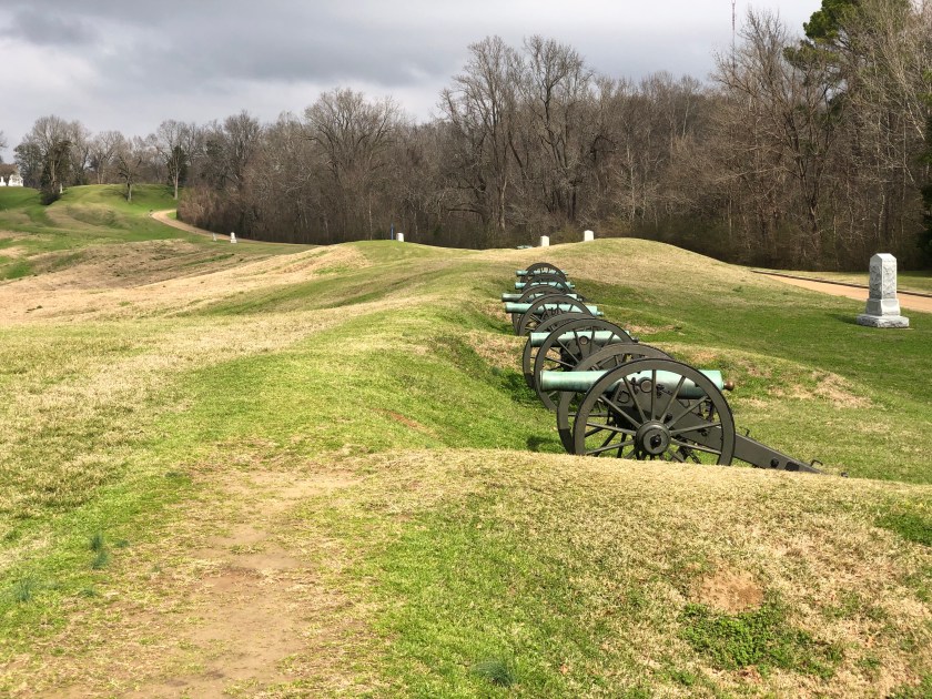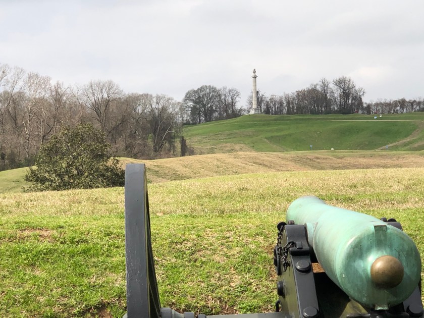 We have been to the Gettysburg National Military Park. The parks are similar in they have a driving route around the battlefield area. These roads pass monuments dedicated to the various battalions from all of the different states involved on both sides. Many of these battalions were fairly small, maybe less than 100 men led by a local guy who got a commission in the army. And his militia battalion became part of one army or the other. At Vicksburg there were more than 100 militias from Illinois for example.