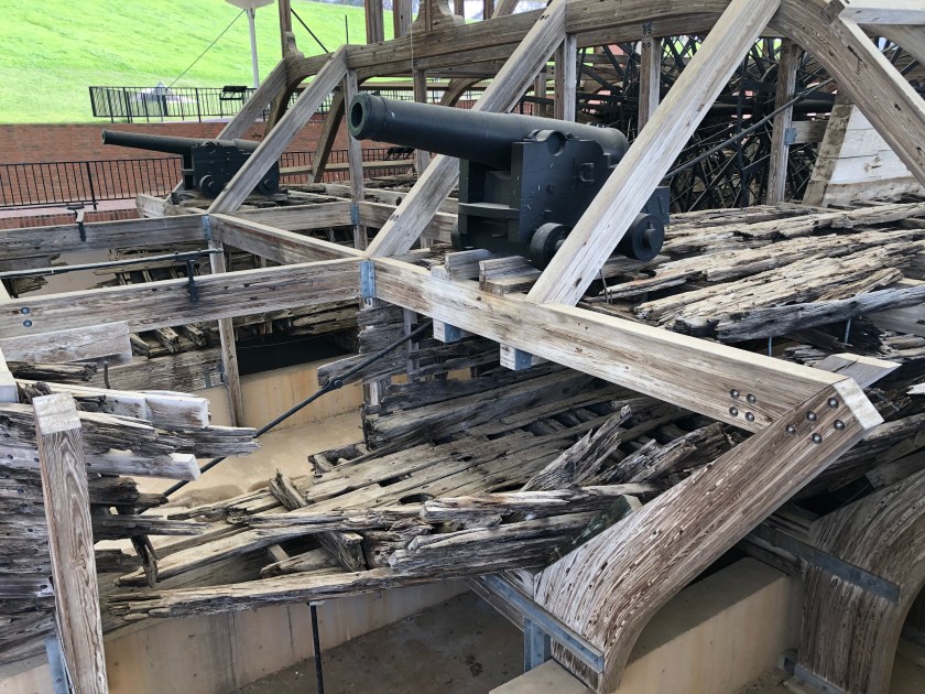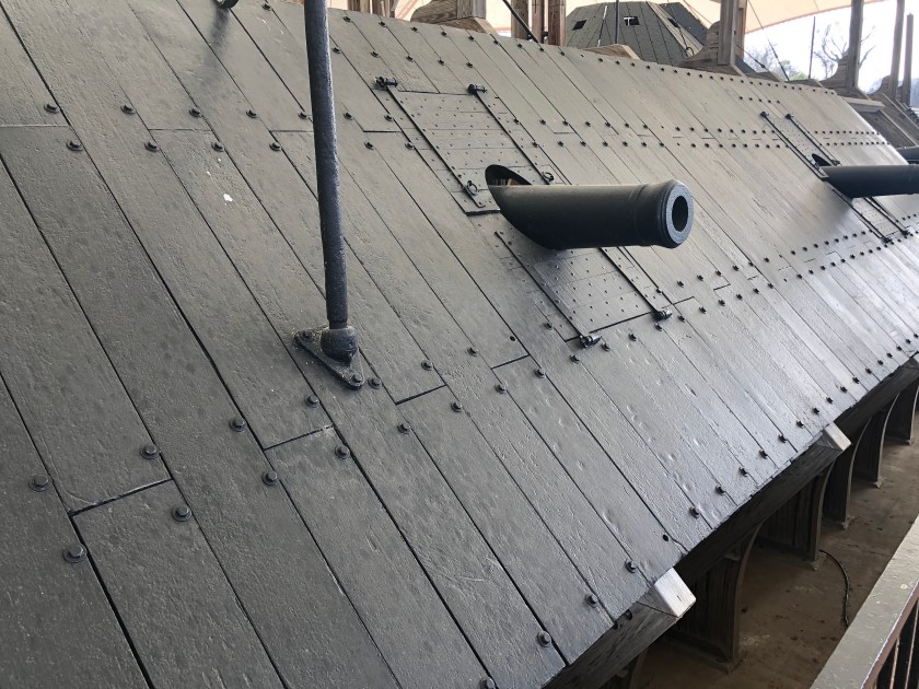 The Union commissioned a fleet of eight river going iron-clad gunboats. These so-called City Class boats were built in 1861 by James Eads and were all named after cities. These were wooden flat bottomed boats with iron cladding. Powered by steam engines the 512 ton, 175 ft long and 52 ft wide barges could manage a top speed of 4 knots. Her crew of 251 enlisted men and officers manned the boilers and the 14 cannons of various sizes. The biggest were 8″ smoothbore cannons.