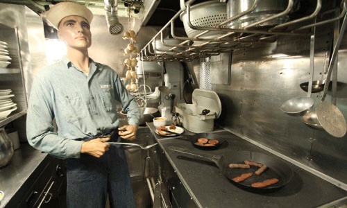 There were three distinct classes on the ship, enlisted men, non-commissioned officers and Officers. They all had their own service staff, dining areas, ward rooms and quarters. It looked like it would have not been much fun being an ordinary seaman. Some had real berths. Most slept in hammocks hung from hooks when in use and stowed away at other times.