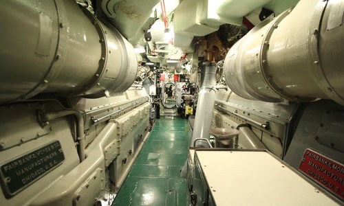 The sub had four huge Fairbanks Morse diesel engines that powered generators to charge batteries and drive electric motors to turn the propellors. The forward and aft engine rooms were the biggest spaces in the sub.