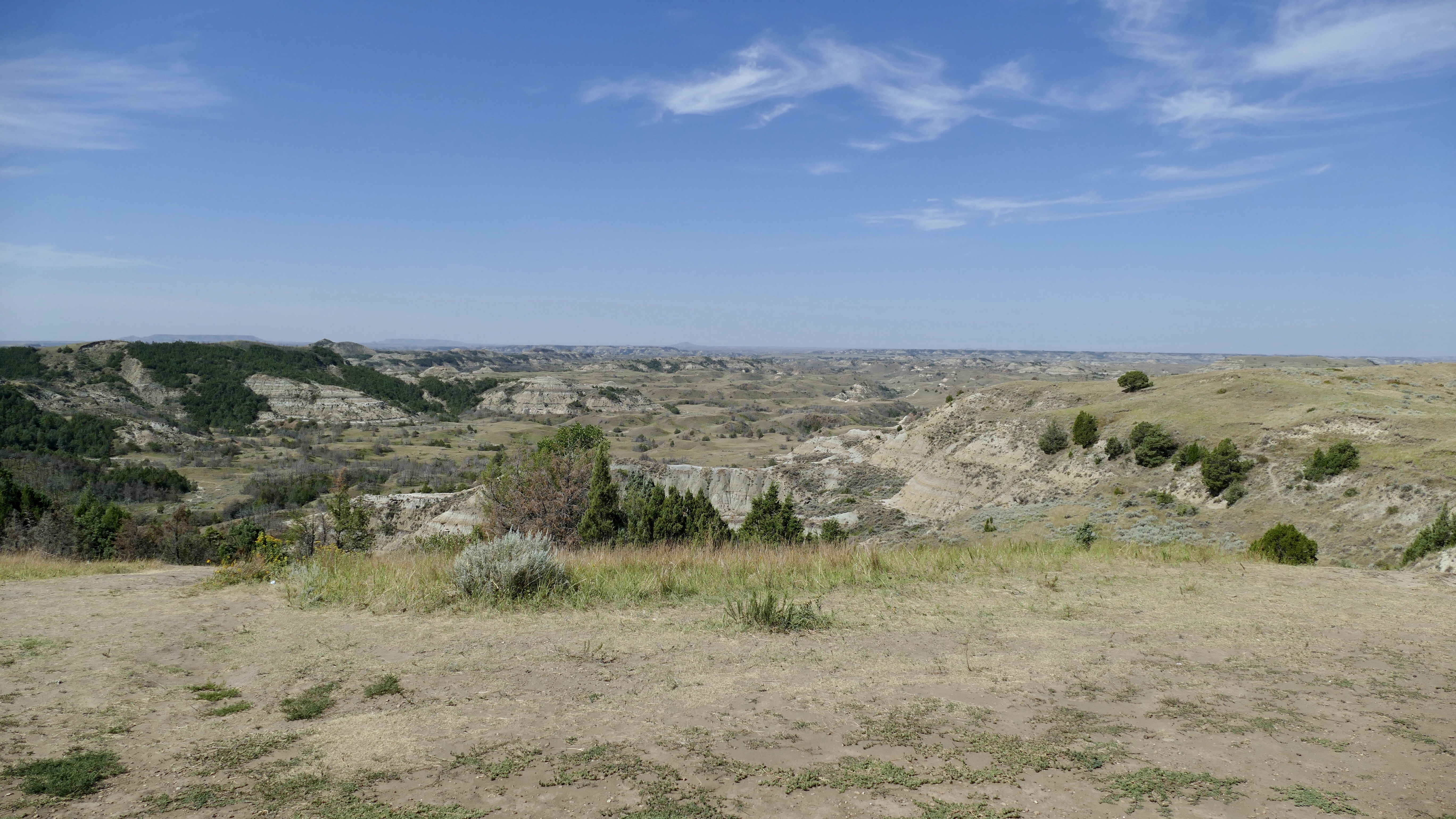 We left Medora heading west into Montana. Medora is in the badlands of North Dakota. The Little Missouri River has carved the soft sedimentary landscape in to deep washes and gullies. It is mostly gray and brown, not many trees, tough country but good for the bison, deer, elk and other animals that live there.