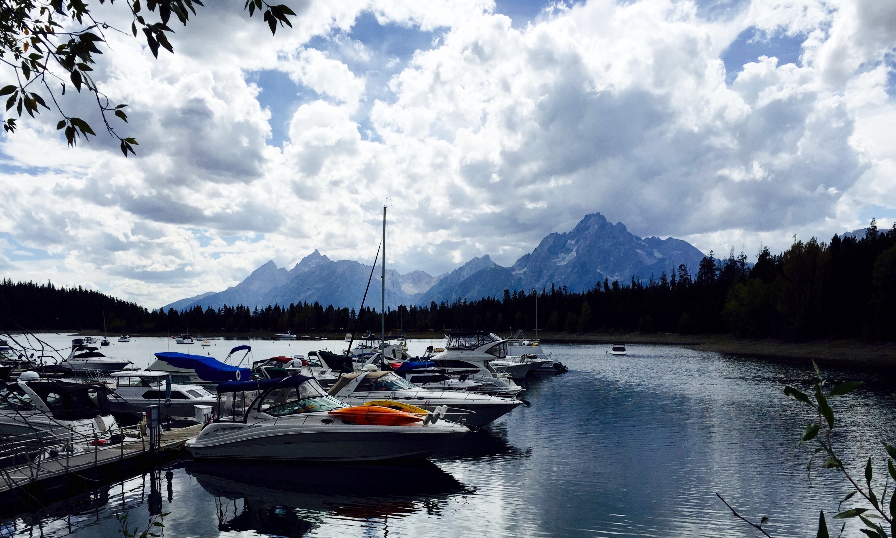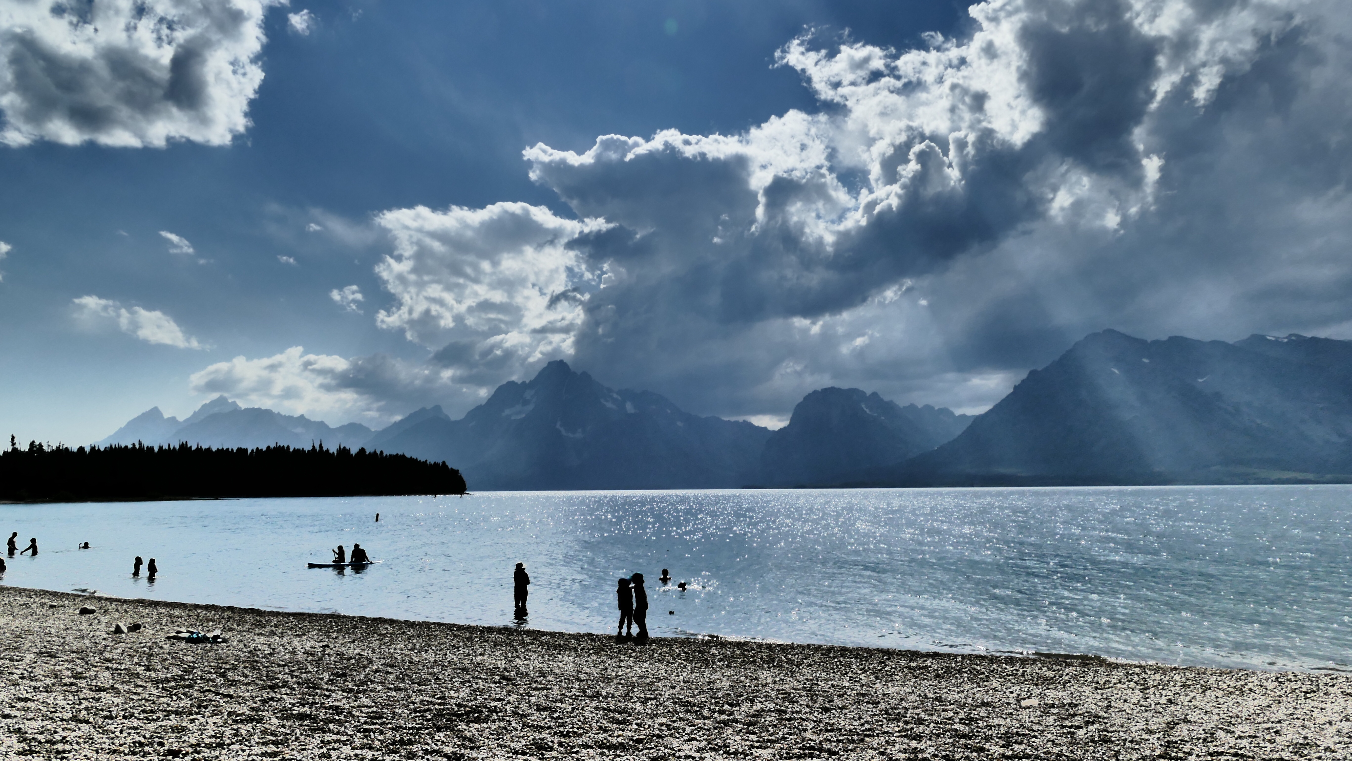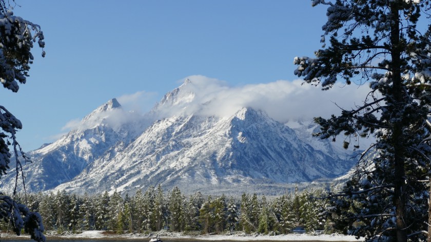 The highest peaks of the Grand Tetons were trailing the last of the clouds.