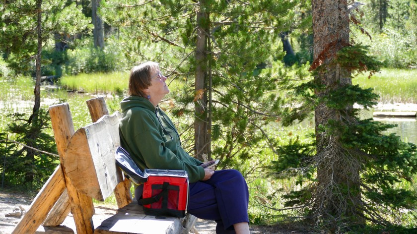 Two Ocean Lake is named because it is on the Continental Divide. Pacific Creek flows out the southern end and down towards the Snake River which eventually gets to the Columbia River and then to the Pacific Ocean. It wasn’t clear where the outlet on the other end of the lake went.