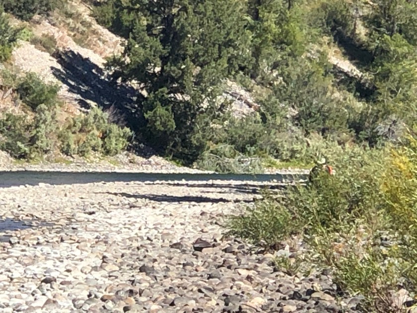 Pilgrim Creek comes out of the Bridger Teton National Forest from the east and flows into the Snake River downstream of the Dam. We cross it every trip going south and see the gravel road heading off to points unknown. Where the highway crosses the gravel wash of the Pilgrim Creek is the only place we think we have seen a bear in the Tetons.