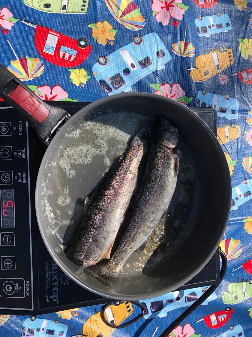 Pretty amazing. And in just five minutes I had another. Keith moved over to the next pool. He caught five, returned two to the pond. We had fresh troug for lunch.